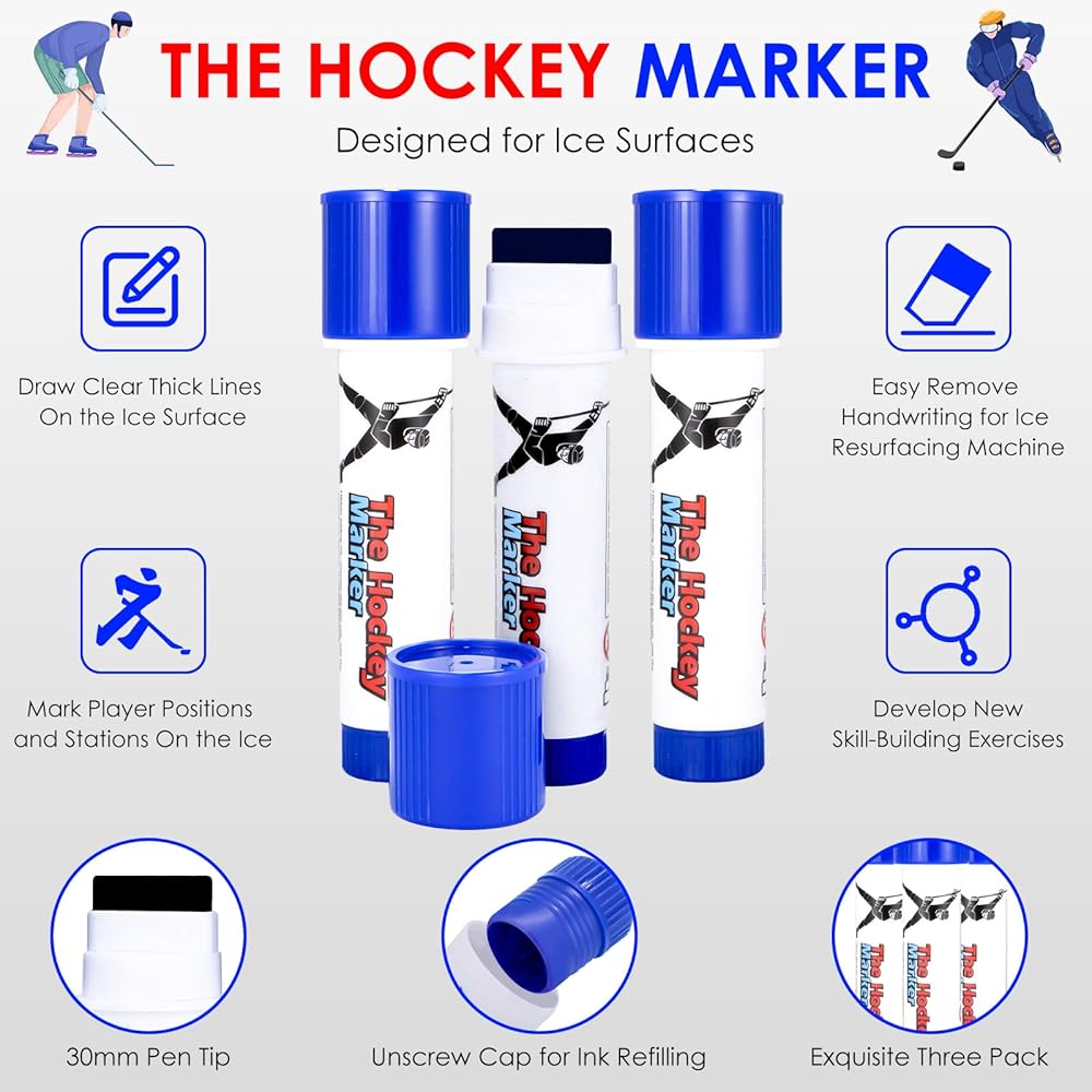 • Practical and Exquisite Hockey Marker: This ice hockey marker is designed for ice, waterproof and has uniform fluidity, which can easily draw straight lines or smooth curves on the ice. It dries quickly, which improves work efficiency; the hockey puck pen can also be unscrewed for ink. It also has a beautiful appearance, printed with the "The Hockey Marker" and the iconic hockey figure, highlighting professionalism and uniqueness. This exquisite three pcs set is definitely worth taking home!