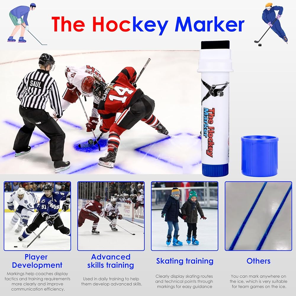 • Excellent Ice Hockey Marker: This hockey pucks marker is easy to write with, allowing coaches to easily and quickly draw lines on the ice to help develop game strategies, skill development or training plans. Its markings are not easy to fade and remain clearly visible for a long time. At the same time, it is also very convenient to remove, which can be easily cleaned by gently scraping with an ice skate or passing it through an ice cleaner. It is a good ice hockey accessories in hockey rink.