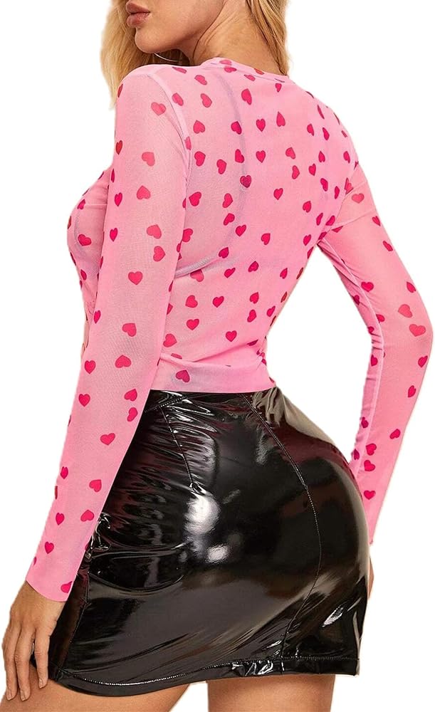- Features: Cropped,Print,Slim fit, Sexy, Sheer Mesh, fishnet top,Round neck, Hollow out, Solid Color, Mesh Top, See Through, Long Sleeve, Stretch tops ,has a subtle shimmer to elevate your look.