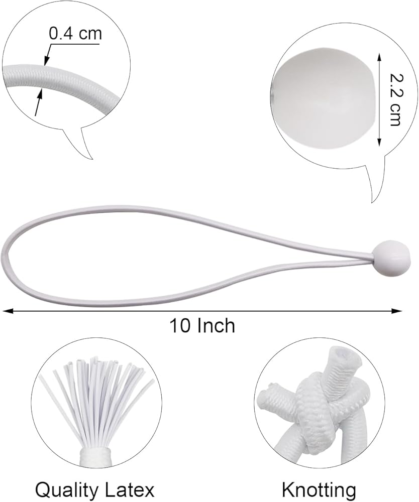 اللاتكس الطبيعي: حبال البنجي الصغيرة ذات الكرات مصنوعة من مواد اللاتكس عالية الجودة ، يمكن استخدام حبال Ball Bungee لفترة طويلة في الهواء الطلق والداخلية. مقاوم للشمس ، مقاوم للماء وملفه الصلب. يمكن تمديد كرات البنجي المرنة لمضاعفة الطول.