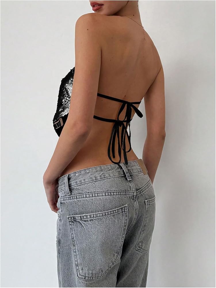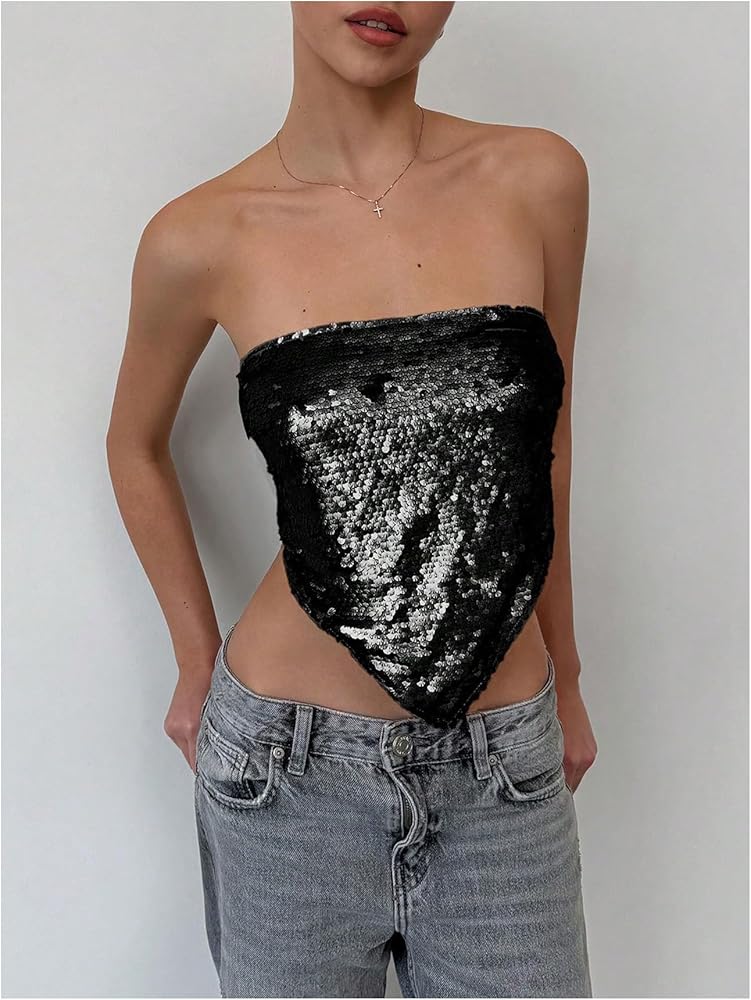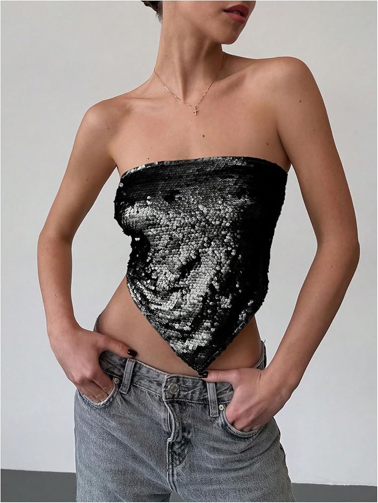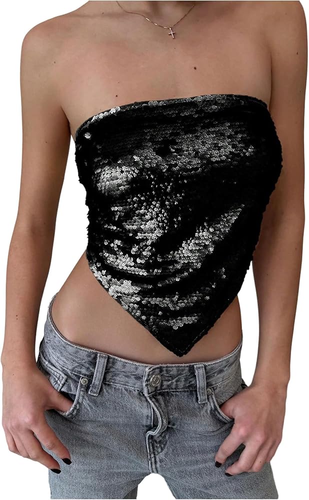 - Features: Sequin, strapless, sleeveless, cropped, party tops for women
