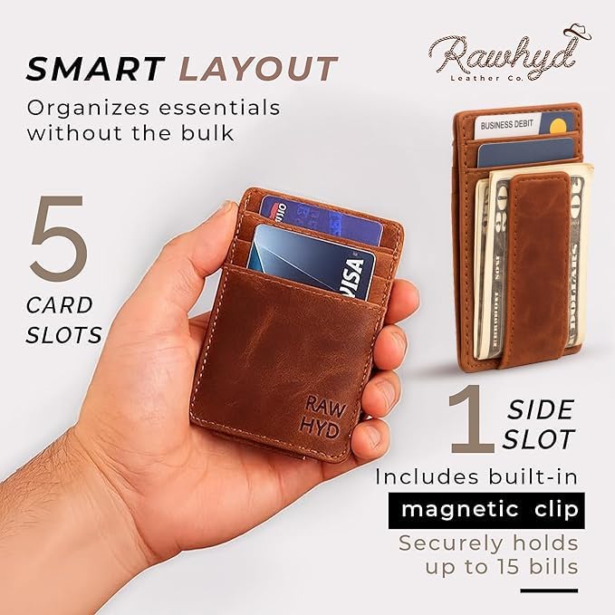 محفظة بمشبك نقود من الجلد المحبب بالكامل - مشبك النقود الجلدي مصنوع من جلد محبب بالكامل (المعروف باسم الأفضل). تحتوي محفظة النقود للرجال هذه أيضًا على 4 مشابك نقود مغناطيسية قوية وتناسب بسهولة جميع ضرورياتك اليومية