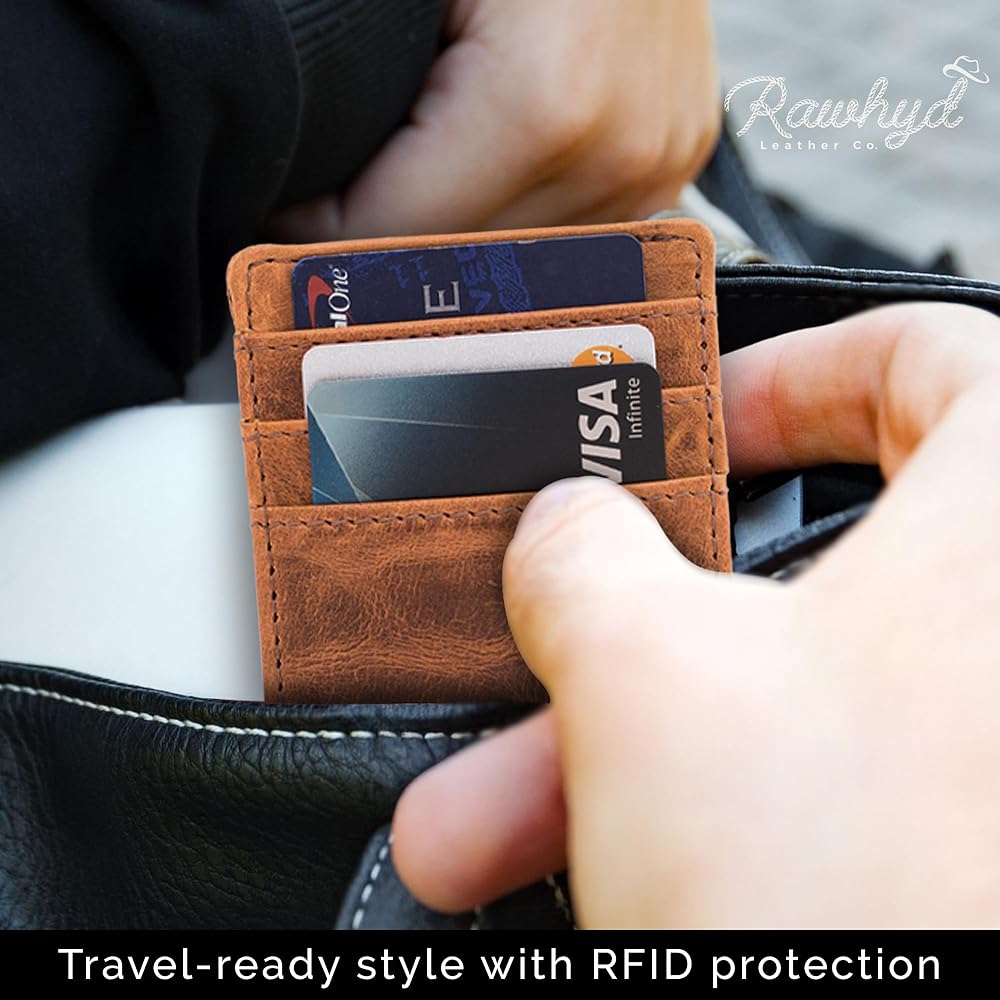 رفيعة للغاية (مصممة في الولايات المتحدة الأمريكية) - يبلغ مقاس محفظتنا الجلدية البنية 2.8 بوصة عرضًا فقط، 4.25 بوصة. طول × 0.25 بوصة. سميكة. يسمح لك تصميم المحفظة البسيط بحمل جميع ضرورياتك اليومية مع الحفاظ على النحافة الفائقة! كما أنها هدية مثالية وتأتي في حقيبة قطنية وصندوق هدايا