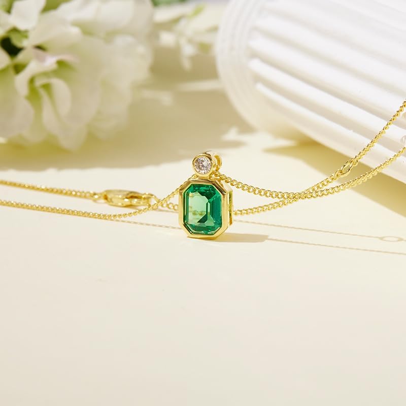 - 【التصميم المبتكر】 يتميز هذه القلادة بتصميم مبتكر يضم كنزًا أخضرًا مثمنًا ومربعًا من الذهب في الذهب 14K ، والجمال والأناقة المشعة.
