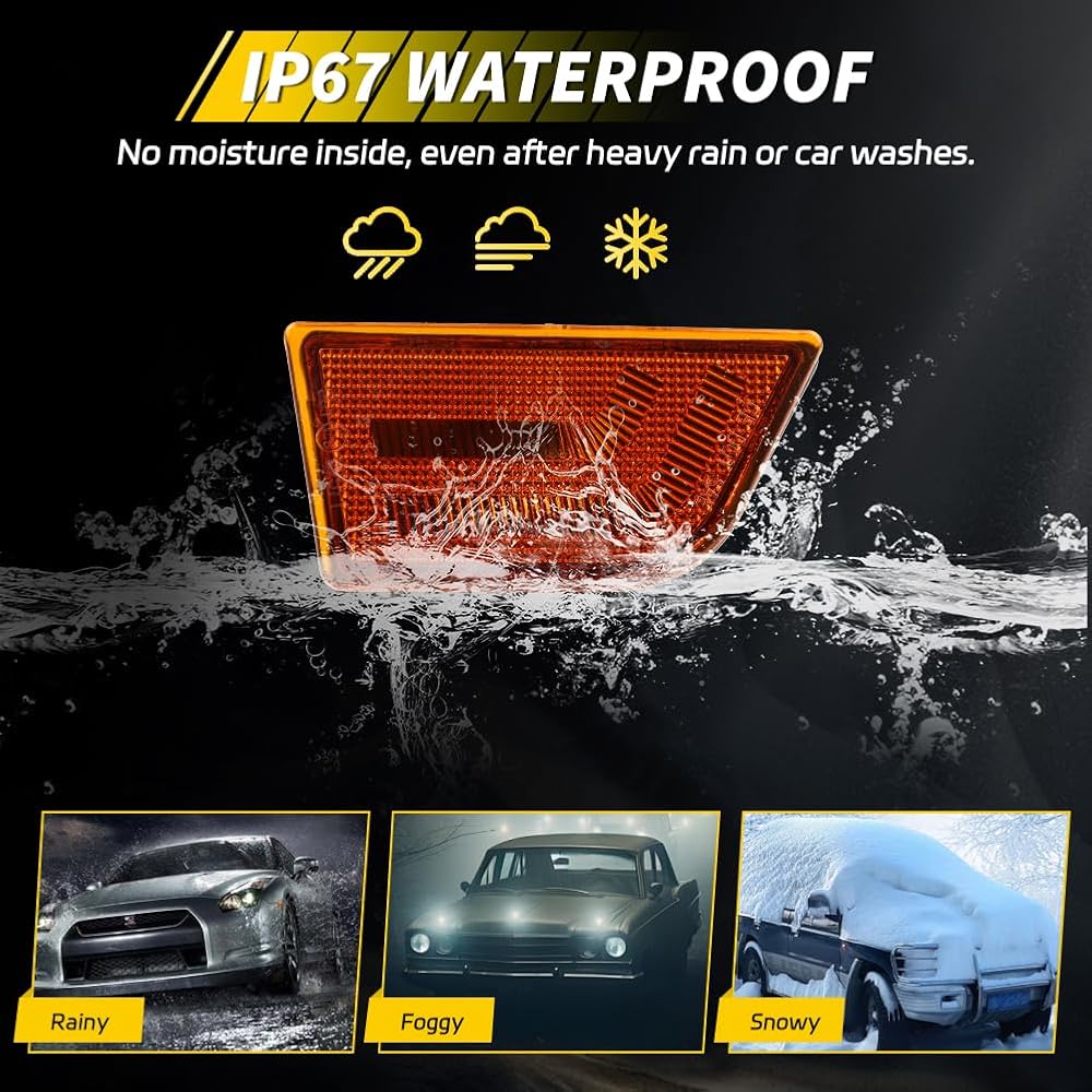 [IP67 Waterproof & Stylish Design] The IP67 waterproof housings come with a reliable seal, providing good lighting in all weather conditions. Our precise and fashionable design increases the visibility and adds an element of style to your vehicle appearance, enhancing your overall driving experience.