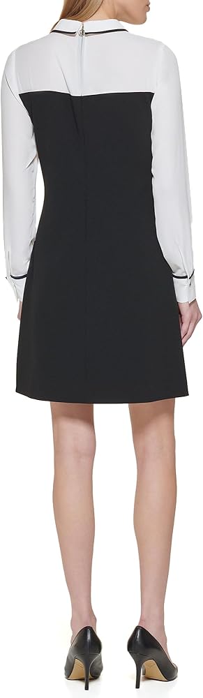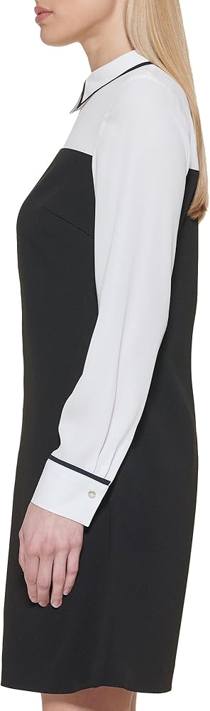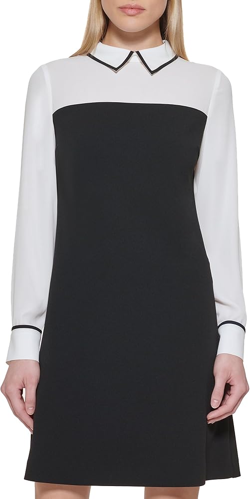 This Tommy Hilfiger Women's Dresses Shift Dress is a Long Sleeve Chiffon Sleeves Collar Scuba Crepe Body Sleeve Cuff