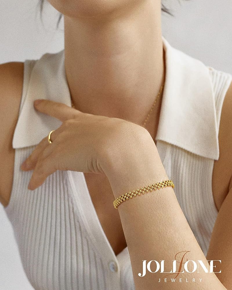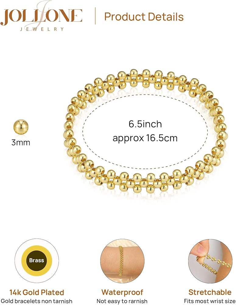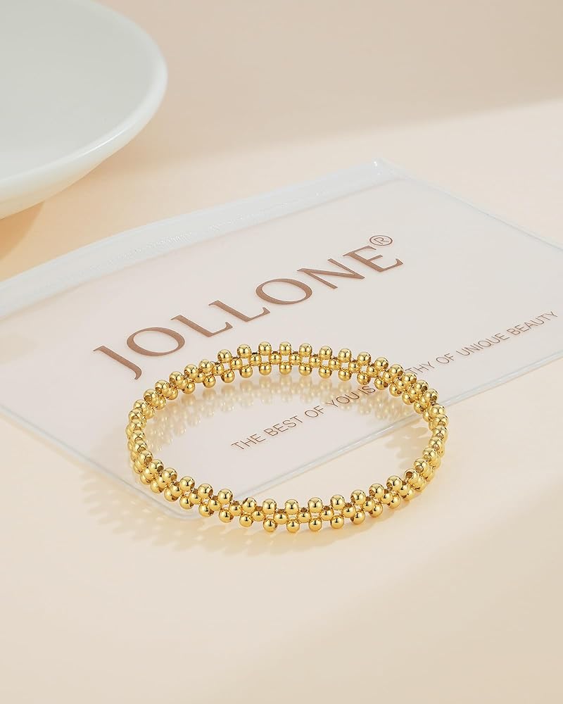 • الأساور الذهبية المذهلة العصرية: أساور Jollone تمتد بالخرز تأتي مع حقيبة العلامة التجارية الجميلة وتأتي أيضًا بقطعة قماش تنظيف ناعمة. إنها هدية مثالية للنساء والرجال والأخت والأصدقاء وأمي وشخص مميز أو نفسك في عيد الأم ، وعيد الحب ، عيد ميلاد ، زفاف ، المشاركة ، عيد الميلاد وعيد الشكر.