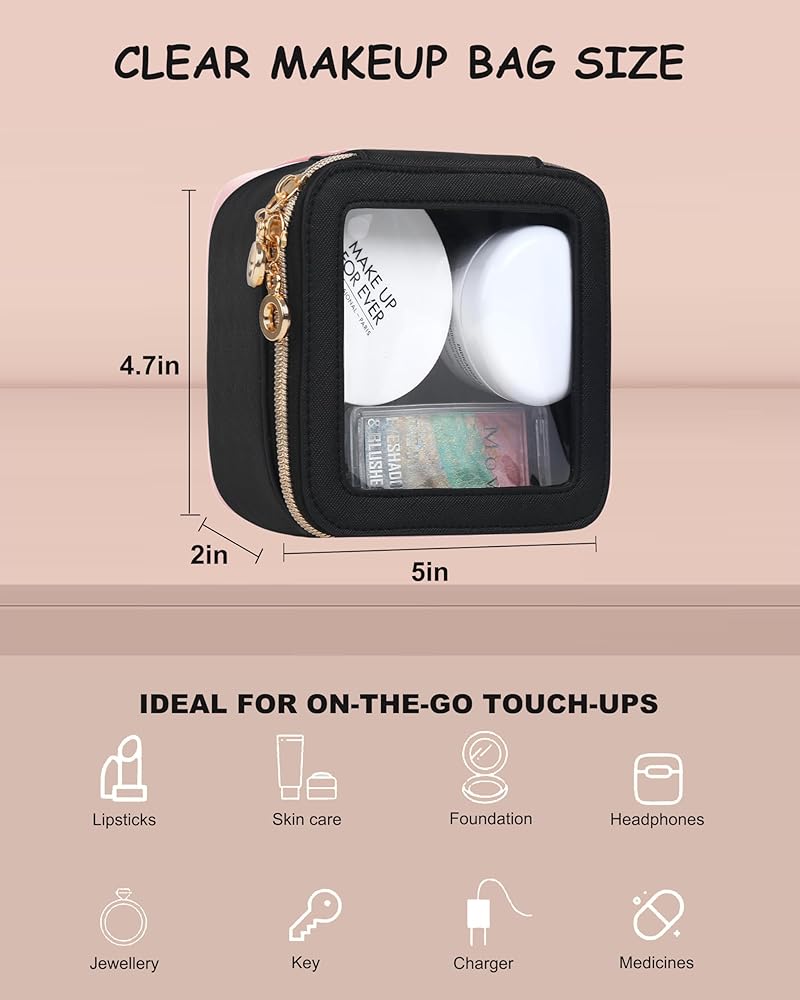 1. حقيبة ماكياج بحجم حجم الحجم: يقيس حقيبة الماكياج الصافية 6.1 × 8.3 × 2.5 بوصة ، مما يجعلها مثالية للاستخدام يوميًا أو استخدامًا