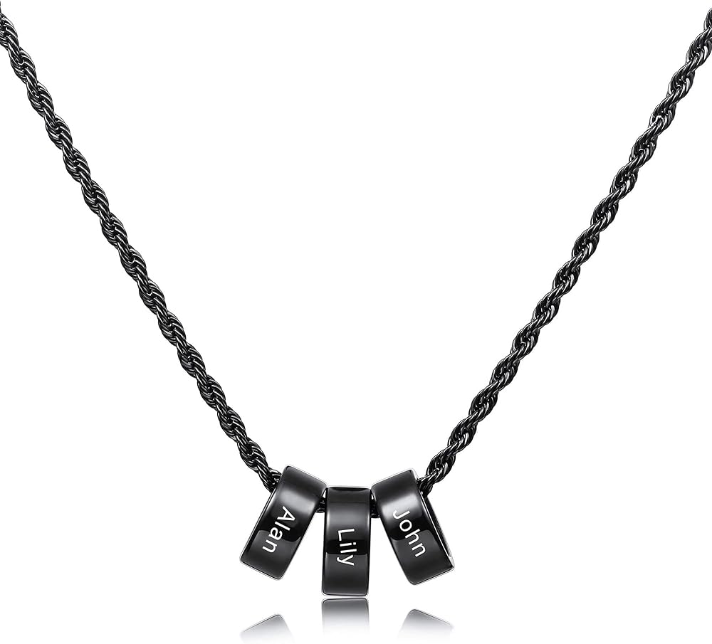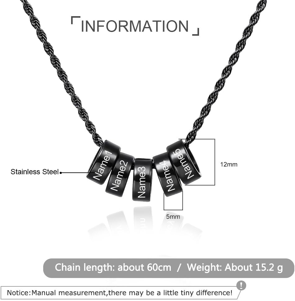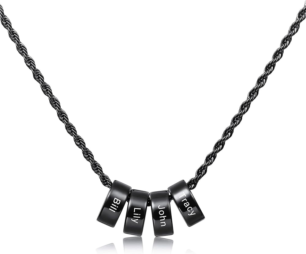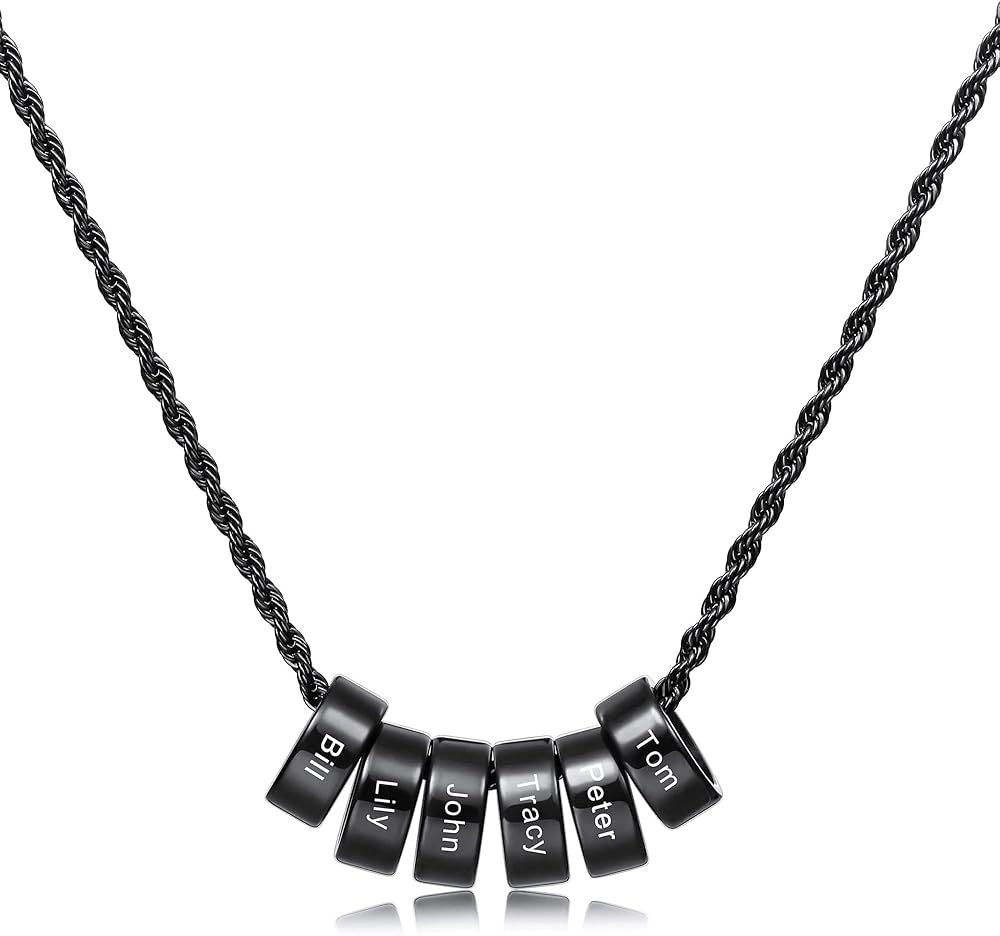 Personalized Name Necklace Custom 2/3/4/5/6 Charm Beads Necklaces for Men Engraving Initial Name Date for Men Women Stainless Steel Chain Jewelry Pendan Gift