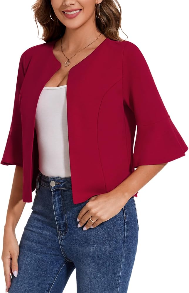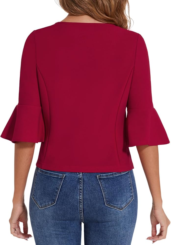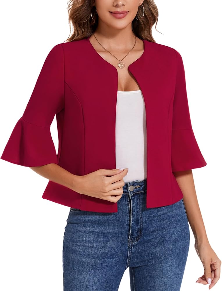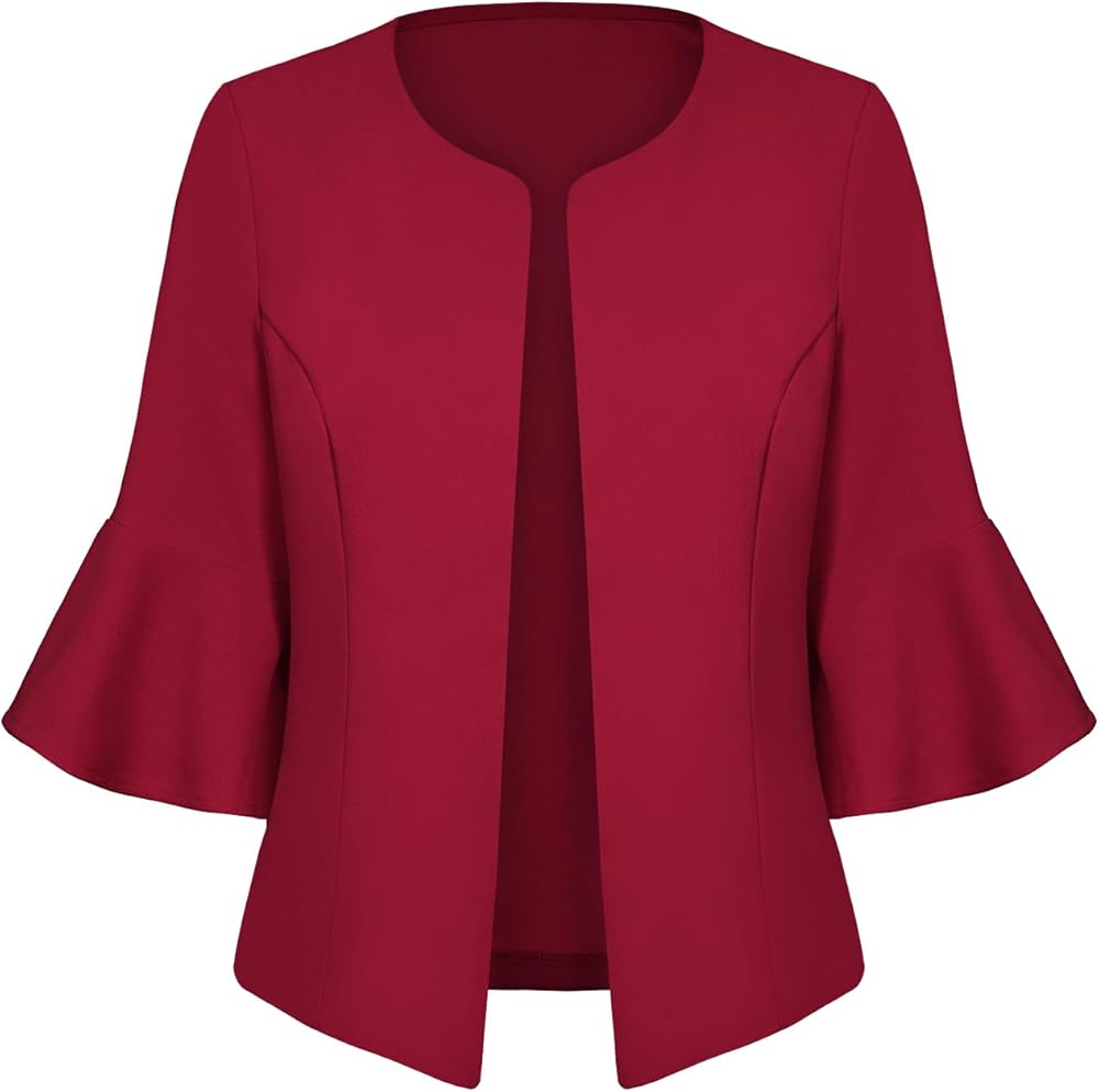 【التصميم الفريد】: سترة من ذوي الياقات النسائية تأتي مع الأمام المفتوحة ، والأكمام المذهلة وتصميم تنحنح الكشكش ، ويظهر النمط الكلاسيكي والخزان الأساسي. 3/4 الأكمام المشوقة تضيف لمسة أنثوية ورومانسية إلى السترة المزروعة ، مصممة لتناسب العديد من إطارات الجسم ، مما يوفر مظهرًا رائعًا ولمسة من الأناقة.