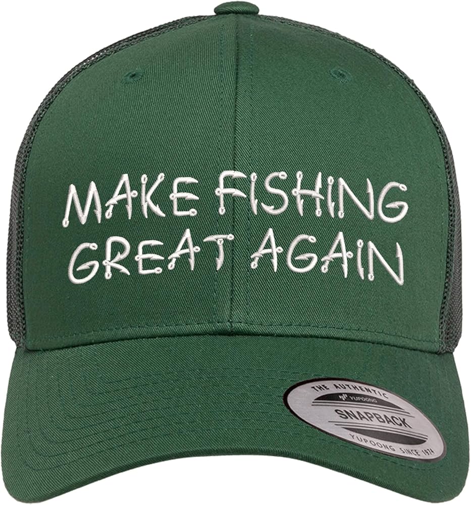 Make a bold statement with this premium embroidered trucker hat featuring “Make Fishing Great Again.” Built on the classic YP 6606, this structured mesh trucker hat offers a mid-profile crown, breathable mesh panels, and an adjustable snapback for a [good fit] that works for most head sizes. Whether you're heading to the lake, beach, or just enjoying a casual day out, this versatile fishing trucker hat delivers all-day comfort and airflow. Its unisex design makes it ideal as a cap for men, women's trucker hat, or even beach trucker hats for women. Lightweight and durable, it's a great choice for those seeking men's trucker hats snapback, snapback hats for men, mesh baseball cap, or ball caps for men. Professionally embroidered in the USA using high-quality commercial machines, this hat blends reliable quality with standout style. Whether you're after cool trucker hats, trucker hats women, country hats, or just a well-made snapback hat, this one delivers on fit, comfort, and everyday versatility.