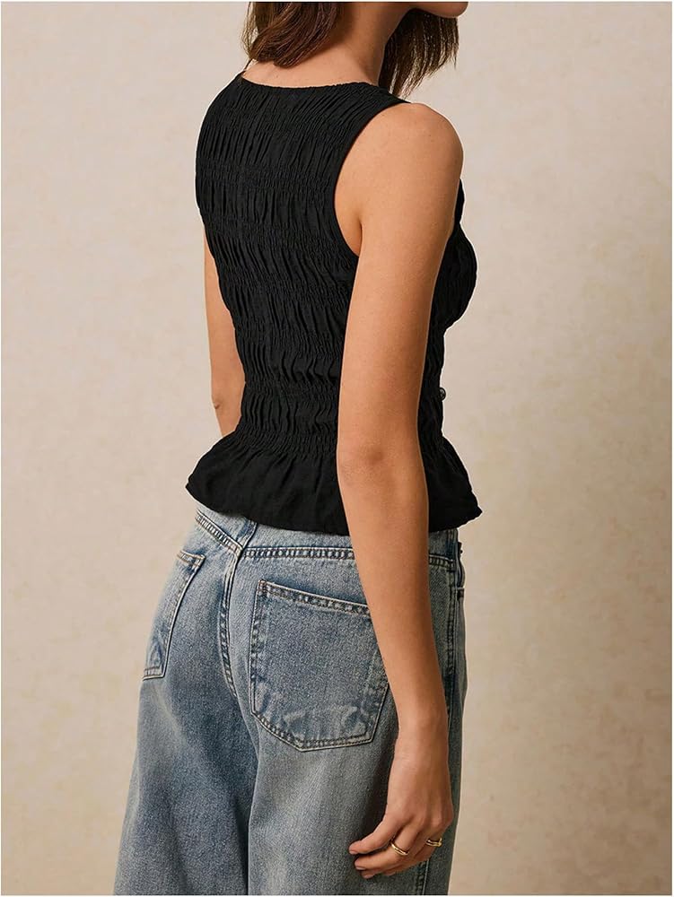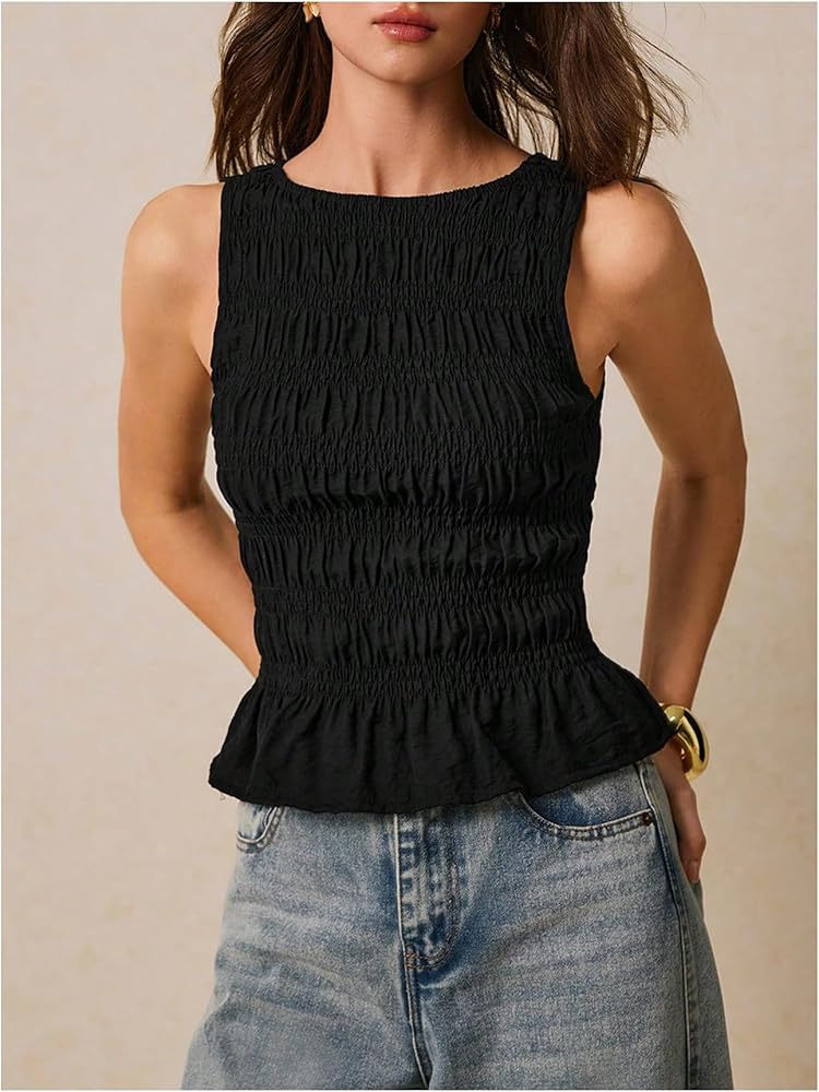 الميزة: بلا أكمام ، ألوان صلبة ، مزخرفة ، رقبة مستديرة ، نائمة ، تنحنح الكشكش ، أعلى الخزان للنساء