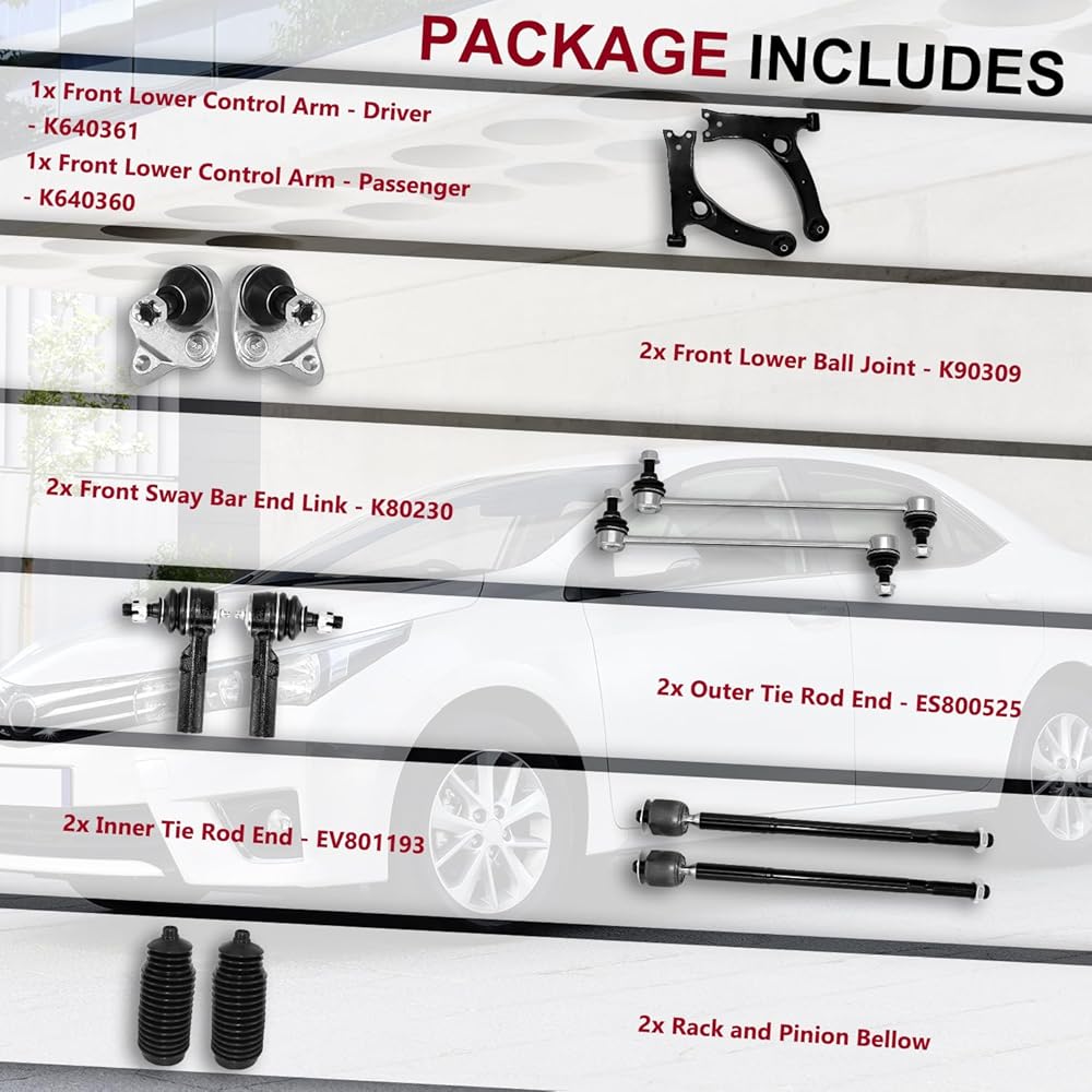 ذراع التحكم السفلى من 12 في المائة مع مفصل الكرة الداخلي وقضبان التعادل الخارجية تربط قضبان بديل التعليق Bellows لعام 2009-2013 Toyota Corolla