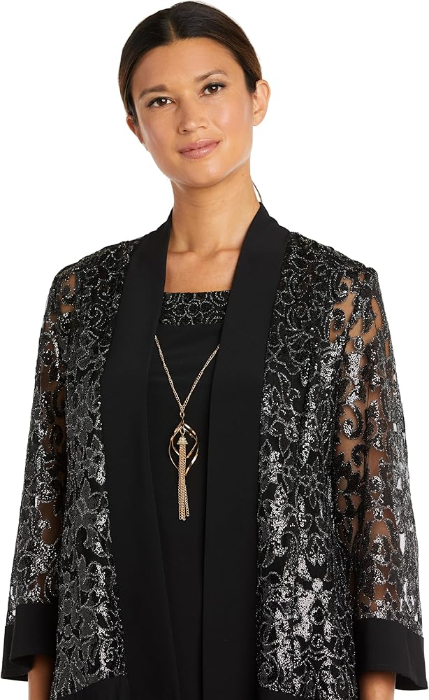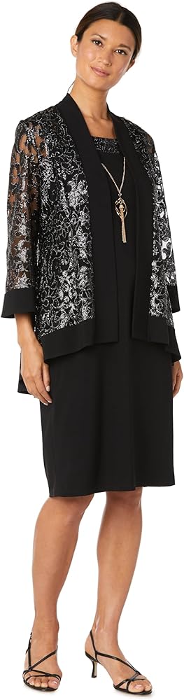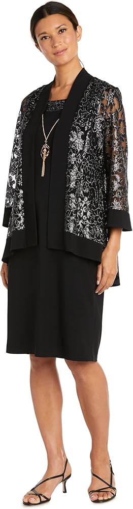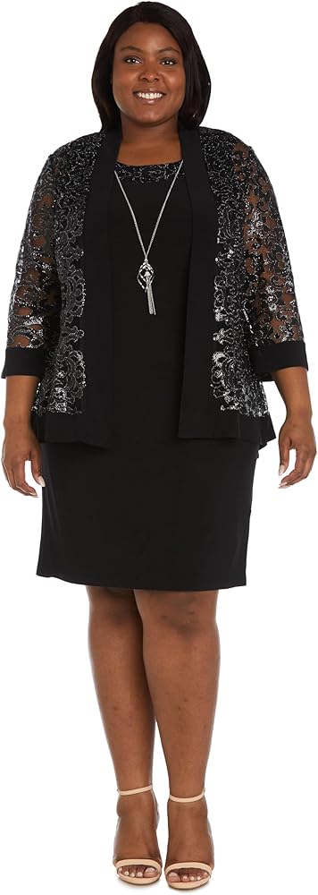 Make a statement and leave a lasting impression in this stunning R&M Richards jacket dress; it will give you the edge you need to take on any event. Expertly tailored construction with attention to detail, ensuring a seamless and polished look that exudes sophistication and elegance. The sheath dress will enhance your stunning silhouette, while the matching jacket with sequin embellishments, gives you a classic yet elegant look. This dress set is sure to enhance your natural beauty and radiance, empowering you to shine bright and command the room with every step!