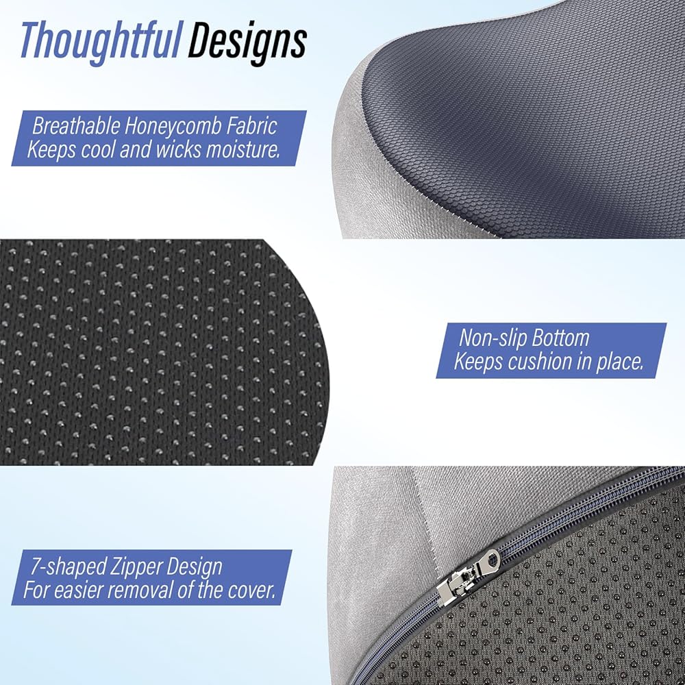⛔ صفر ضمان التنقل Zero -Slip 15 ° تصميم المنحدر + 188 نقاط قبضة تبقي الوسادة آمنة أثناء تحويلات السيارات/نقل الكراسي المتحركة - تم اختبارها عند 0.8g قوة جانبية. وسادة الكرسي هذه مثالية للجلوس المطول ، وتخفيف العرق النسا ، وعدم الراحة عظم الذنب ، وآلام أسفل الظهر ، وخدر الساق ، وعدم الراحة في الورك