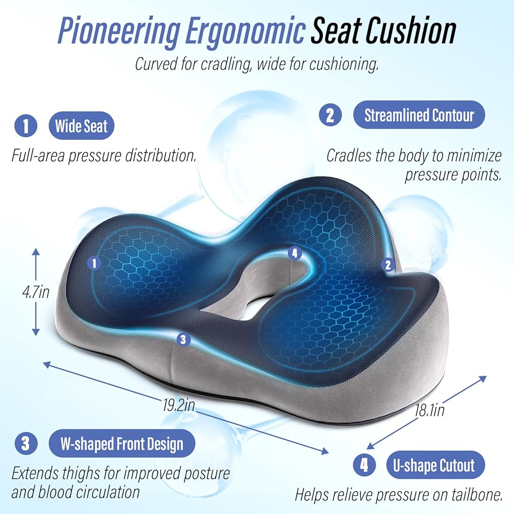 🦴 تقنية تخفيف الألم المعتمدة ، تتميز وسادة المقعد المكتبي بتصميم منحني رائد في الخلف وعلى جانبي مناطق الفخذ ، وتستهدف المرحلة المزدوجة مع وجود أعصاب الوركية ونقاط ضغط عظم الخلفي - سريريًا تقليل إزعاج الورك بنسبة 72 ٪.