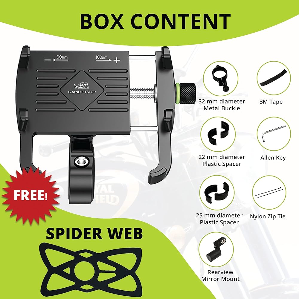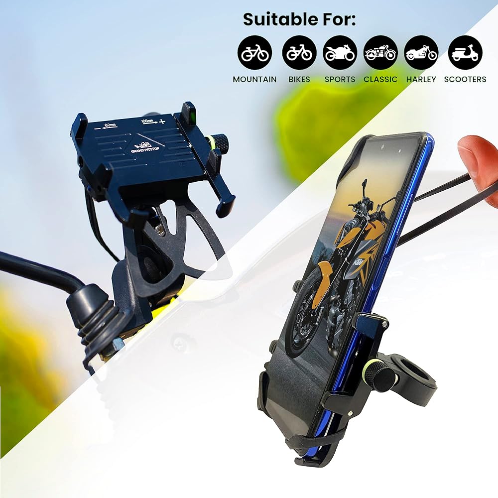 السلامة: دائمًا إعطاء الأولوية للسلامة عند استخدام أي جهاز أثناء ركوب دراجة نارية. تأكد من أن حامل الهاتف لا يعرقل عرضك أو الوصول إلى عناصر التحكم الأساسية على دراجتك.