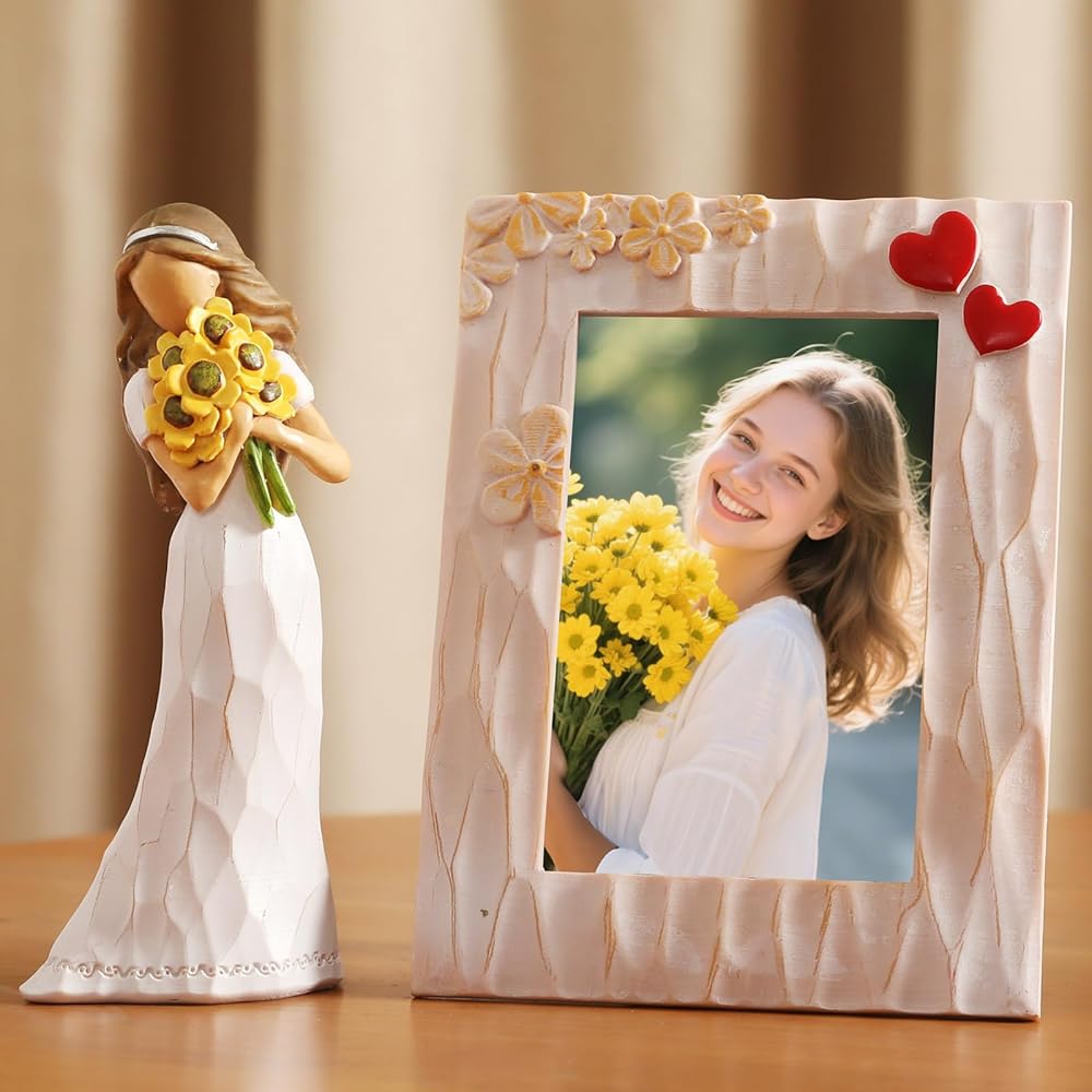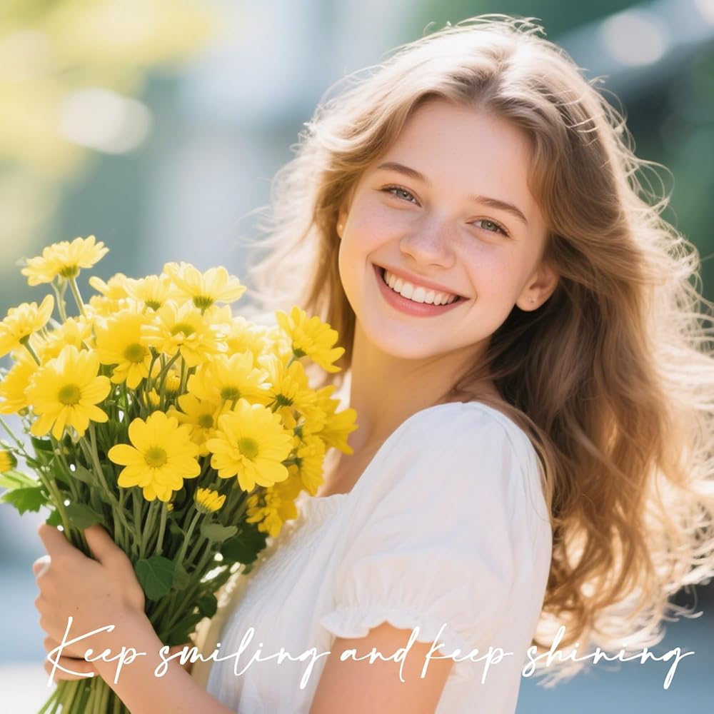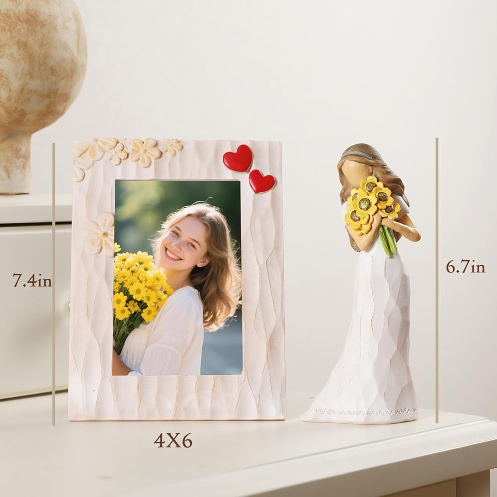 الهتاف الجيد: الفتاة في فستان كريمي 6.7 "تحمل مجموعة من عباد الشمس ، وهي أنيقة وجذابة بصريًا. ترمز إلى التشجيع والأمل ، نيك ناكس البسيط ولكن لا يخسر الشهية.