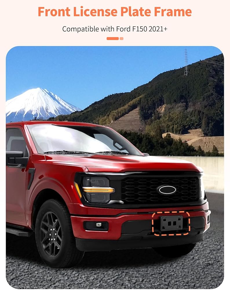 Perfect Compatibility: Front License Plate Holder Bracket Frame designed specifically for Ford F150 models from 2021-2025+, our Front License Plate Frame measures 12.8x6.89 inches, ensuring compatibility with your vehicle's design.
