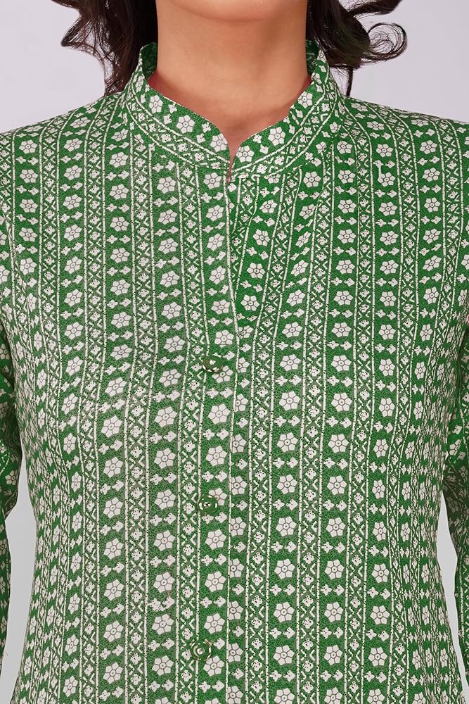 This Indian Cotton-Rayon Kurti for women is the perfect combination of comfort, style, and versatility, making it a must-have for any wardrobe. The straight-fit design offers a flattering silhouette that suits all body types, while the stylish 3/4 sleeves add an elegant touch, making it suitable for both warm and mild weather. Made from a high-quality cotton-rayon blend, this Kurti is soft to the touch, breathable, and lightweight, ensuring comfort throughout the day. The vibrant polka dot prints bring a modern, feminine charm, elevating its classic design and making it perfect for casual outings, family gatherings, or even a day at work. Its lightweight fabric is designed to keep you cool during warmer months, yet offers enough versatility to layer during cooler weather, making it a year-round wardrobe essential. The easy-care fabric is machine washable and retains its vibrant colors and shape even after several washes, ensuring long-lasting durability. Whether paired with leggings, jeans, or palazzo pants, this Kurti is a stylish choice that can be dressed up or down, offering a seamless blend of fashion and comfort for any occasion.