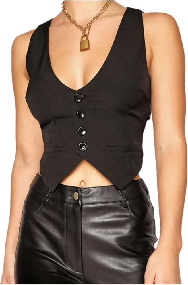 ★Design---Y2k aesthetics sleeveless vest top feature, sleeveless, v neck, button down, crop top, solid color, dressy open front bustier top. The sleek and sophisticated design adds a touch of elegance to any outfit, making it perfect for both formal and professional occasions. A nice suit vest that everyone deserves