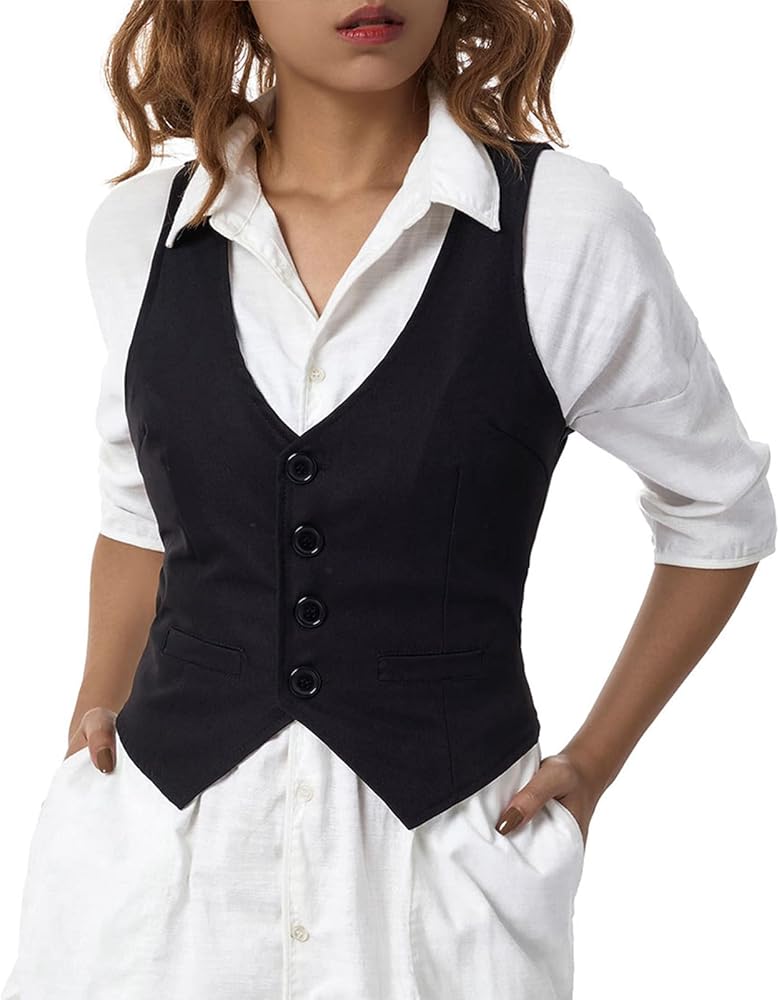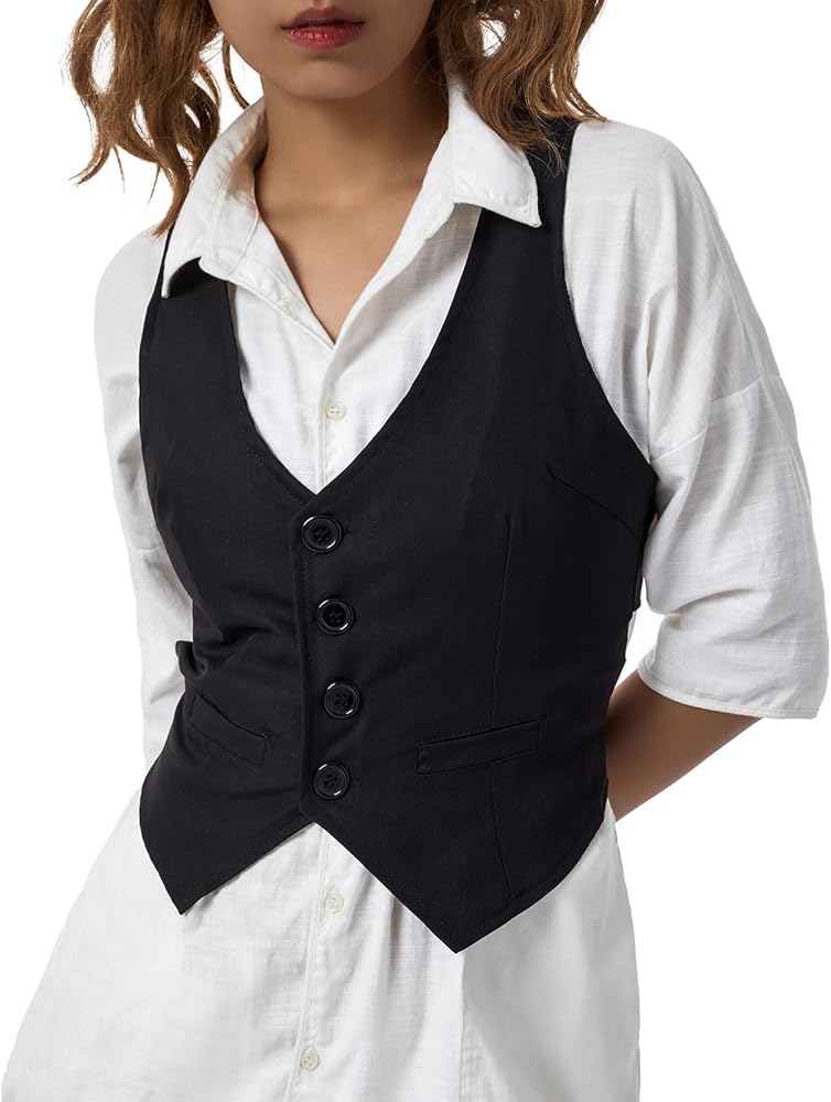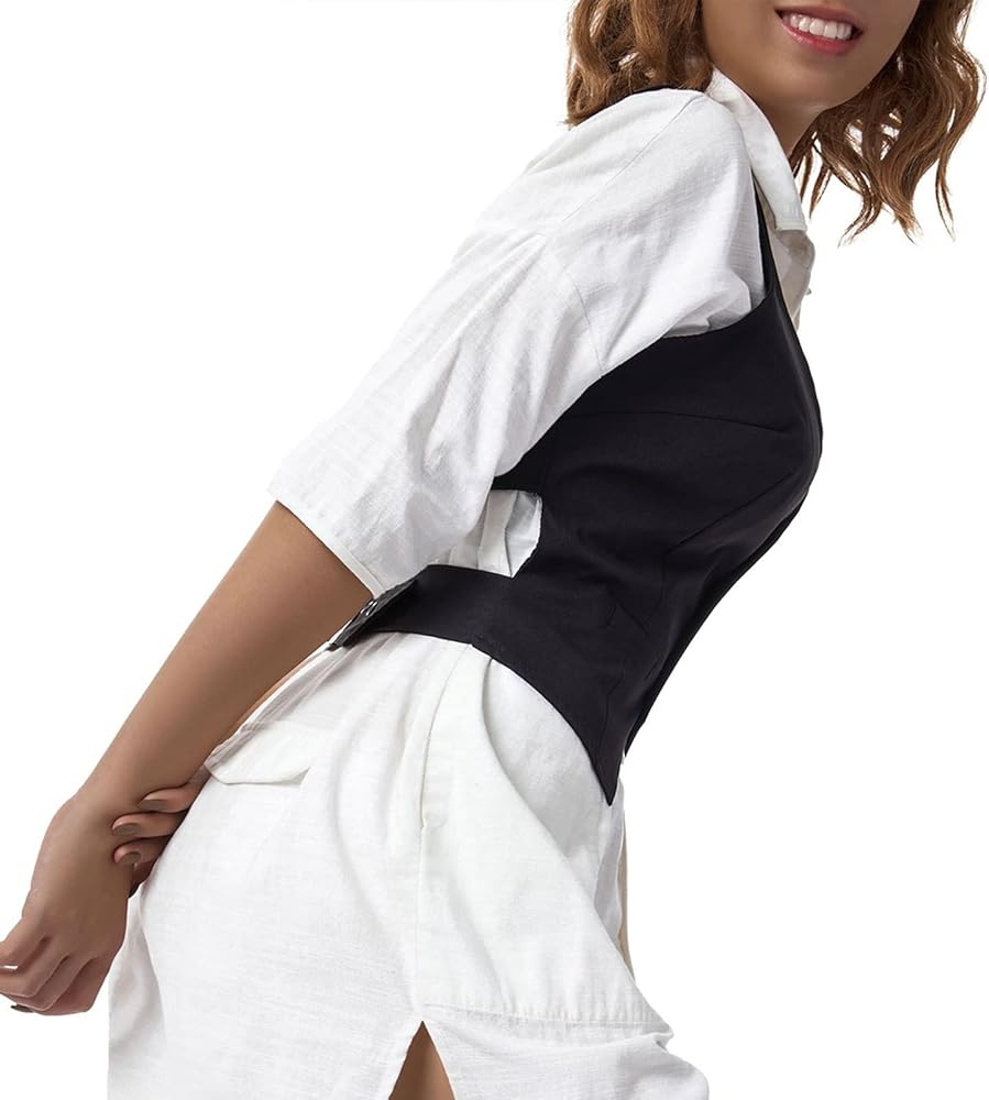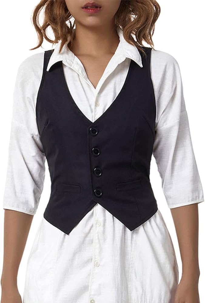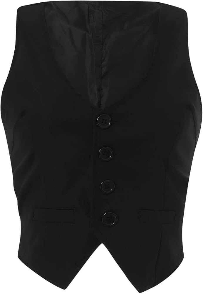 Women Dressy Sleeveless Vest Tops V Neck Button Front Cropped Waistcoat Formal Blazer Vest Gilet Top Outwear