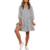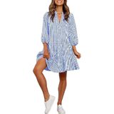 【تصميم أنيق】 فستان MIDI Summer الشاطئ الصيفي للنساء يتميز بالرقبة V ، إغلاق زر ، أكمام نفخة ، جيبان مرتفعان ، جيبان جانبيان ، ملاءمة مريحة ، صورة ظلية على خط ، خطوط ثنائية الأرجوحة ذات الطبقات تجعل هذا اللباس القميص أنيقًا. هذا الفستان القميص منقوش مثالي للمرأة التي ترغب في الحفاظ على السحر والراحة طوال الوقت