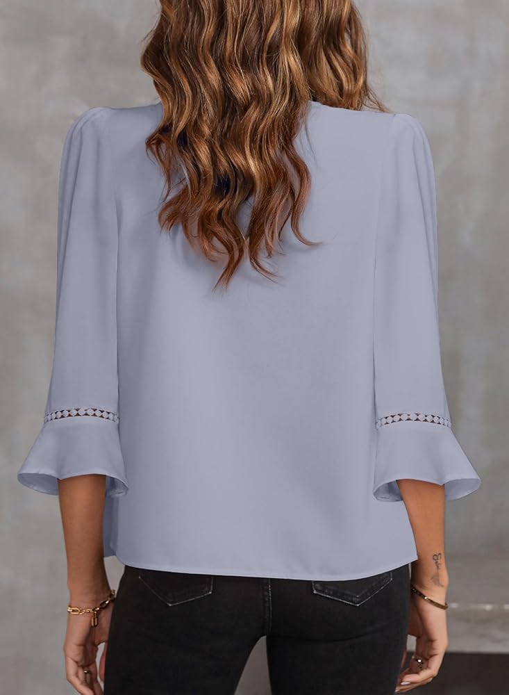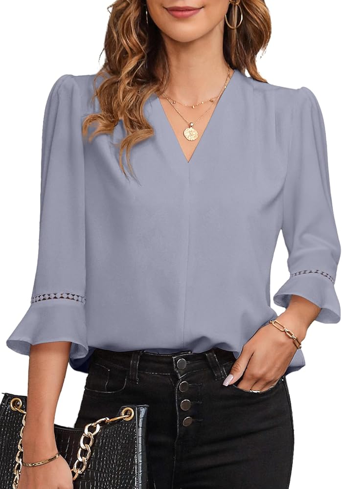 الميزة: رقبة V مطوية ، 3/4 غلاف مع أصفاد خوف من الكشكشة ، ملاءمة فضفاضة ، ألوان صلبة ، خفيفة الوزن ، تنفس ، غير رسمية ومريحة - مثالية للعمل أو الأعمال أو التواريخ أو الشاطئ أو العطل