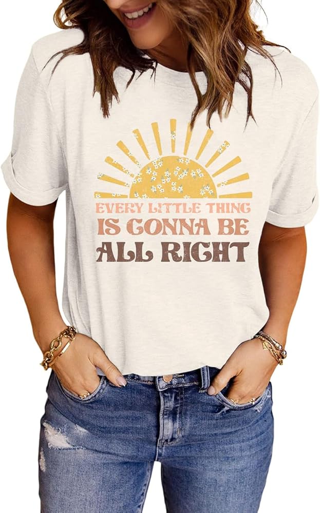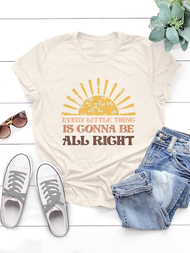 • خمر كل شيء صغير سيكون على ما يرام tirt country موسيقى الأغاني قميص قميص أشعة الشمس لطيف للنساء