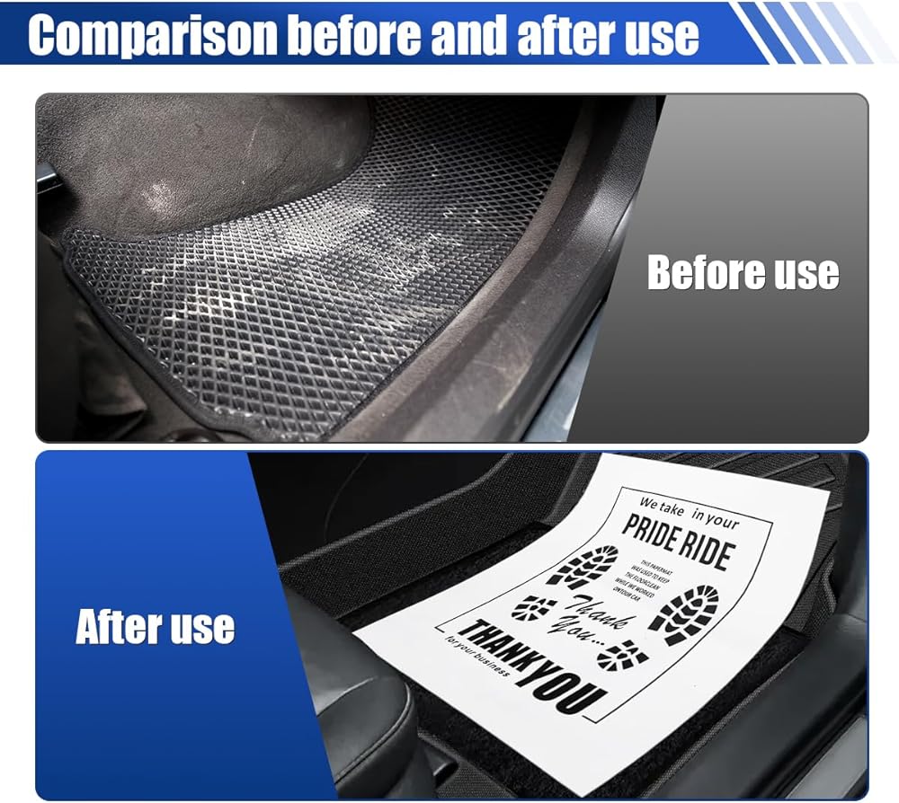 【Unique Design】:This car Kraft paper floor mat is based on simplicity and humor, with exclusive footprints and warm blessings, and has both practical and decorative functions. It can not only show personal taste, but also enhance the style of the car.