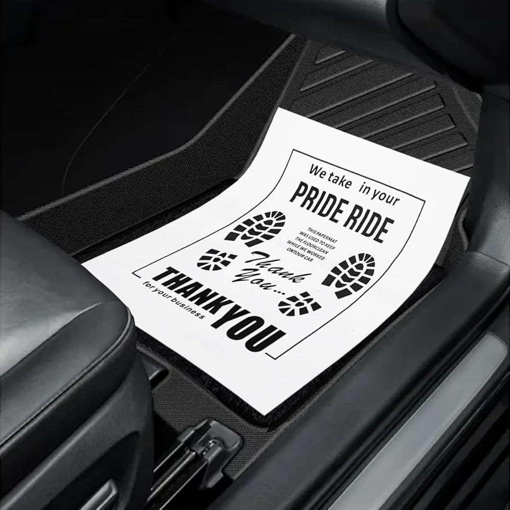 This automotive paper floor mat effectively blocks dust, oil stains, and water stains, protects the original car carpet from pollution and damage, and effectively extends the service life of the floor mat.