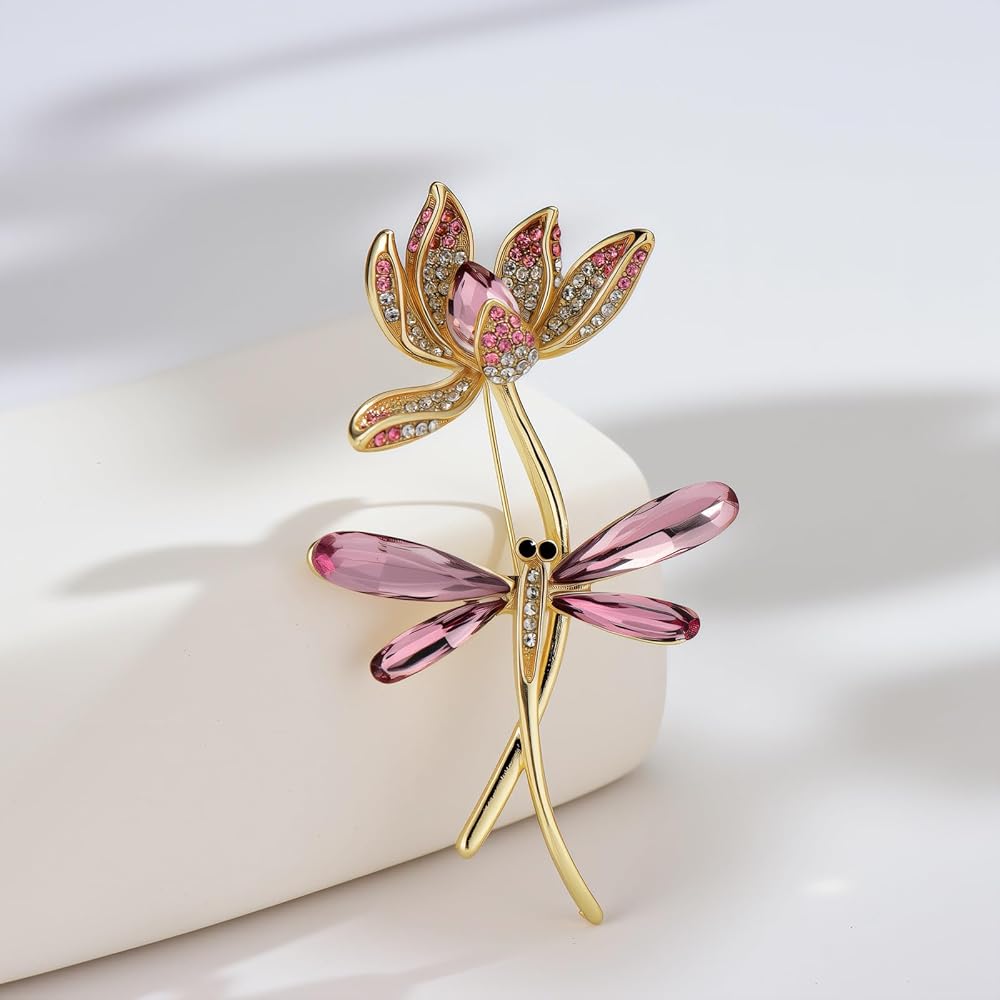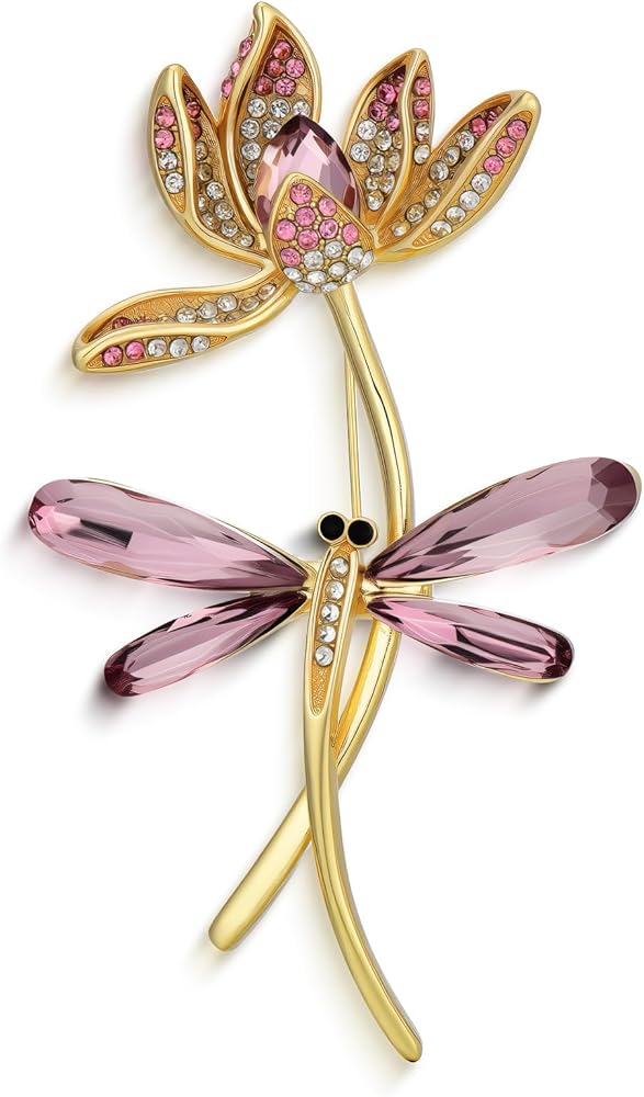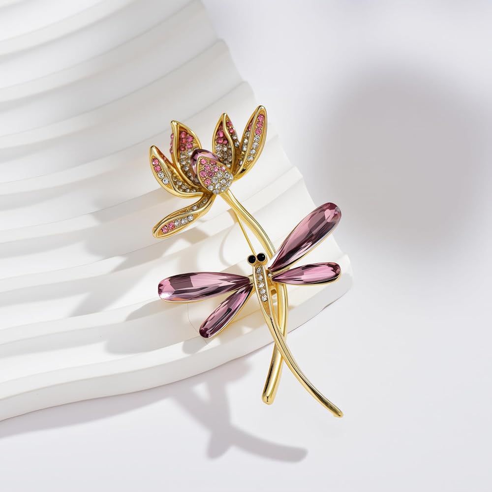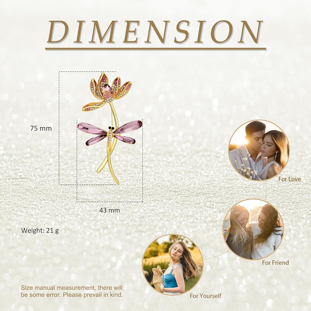 المواد الممتازة: يتكون بروش اليعسوب من النحاس المطلي بالذهب عالي الجودة ، المزينة بأحجار الراين الرائعة والمينا.