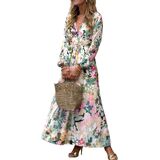 Loz Women's Summer Dress Puff Sleeve v-Neck Multicolor Floral Maxi Dresses 2025 Long Sleeves Wedding Guest Dress