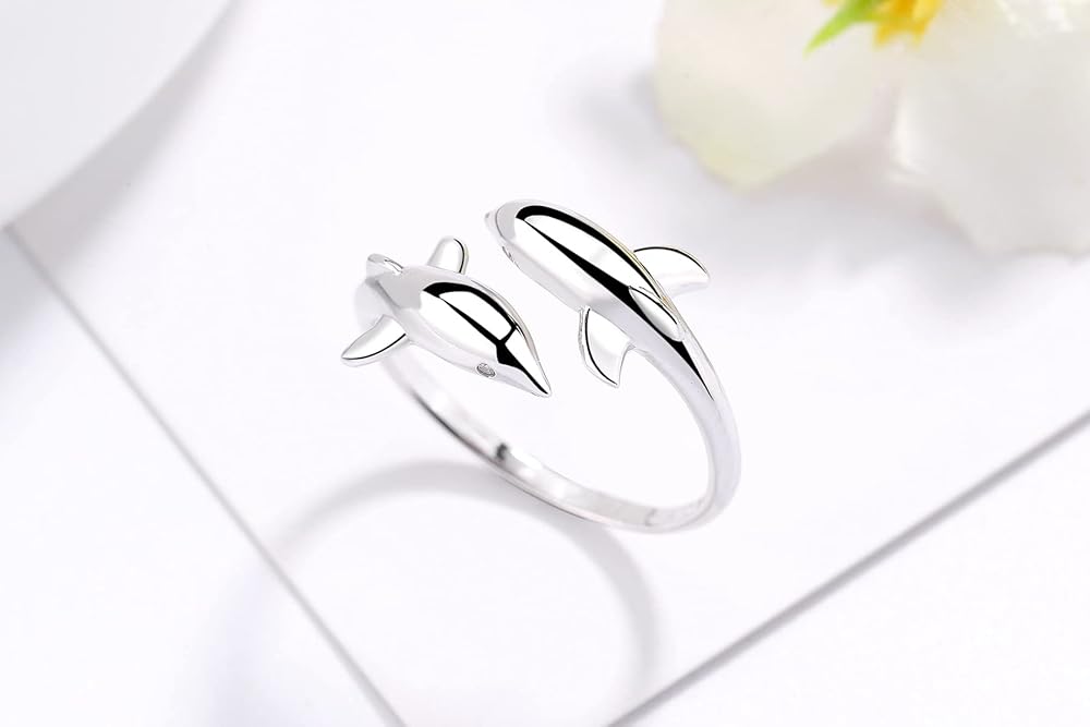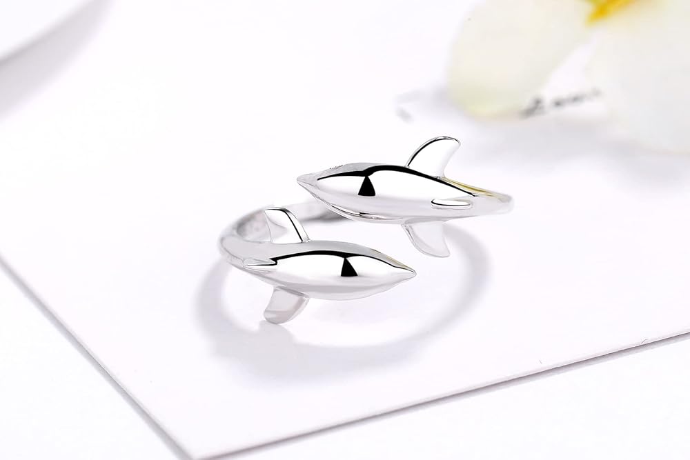 • 2. تصميم دولفين مزدوج: تتميز الحلقة بتصميم دولفين مزدوج فريد من نوعه، يرمز إلى الفرح والتناغم والاتصال، مما يضيف لمسة من الأناقة والدفء إلى مجموعتك.