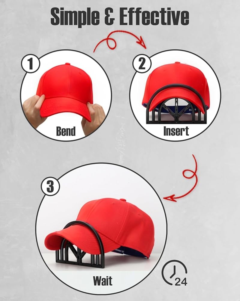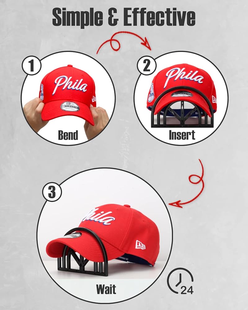 بسيطة وفعالة - ما عليك سوى إدخال فاتورة قبعتك في فتحات ثني قبعة القبعة واتركها طوال الليل للحصول على مظهر جديد مثالي. يمكنك أيضًا تبخير الفاتورة أو غمسها في الماء وتركها تجف للحصول على شكل أكثر استدامة.