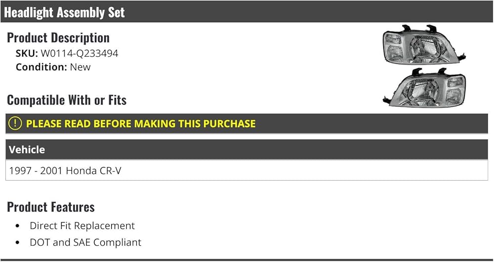 • Compatible with or fits: 1997 - 2001 Honda CR-V