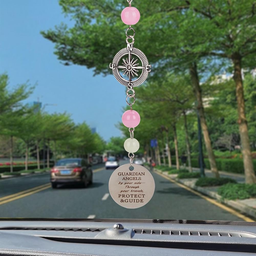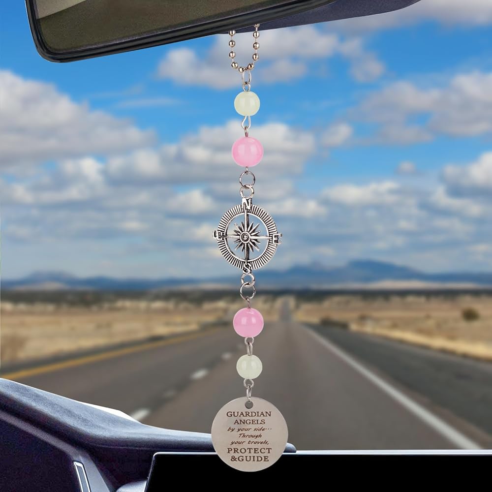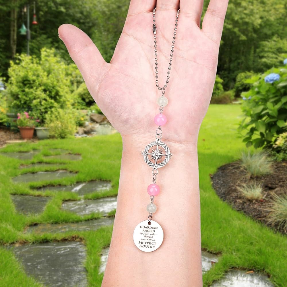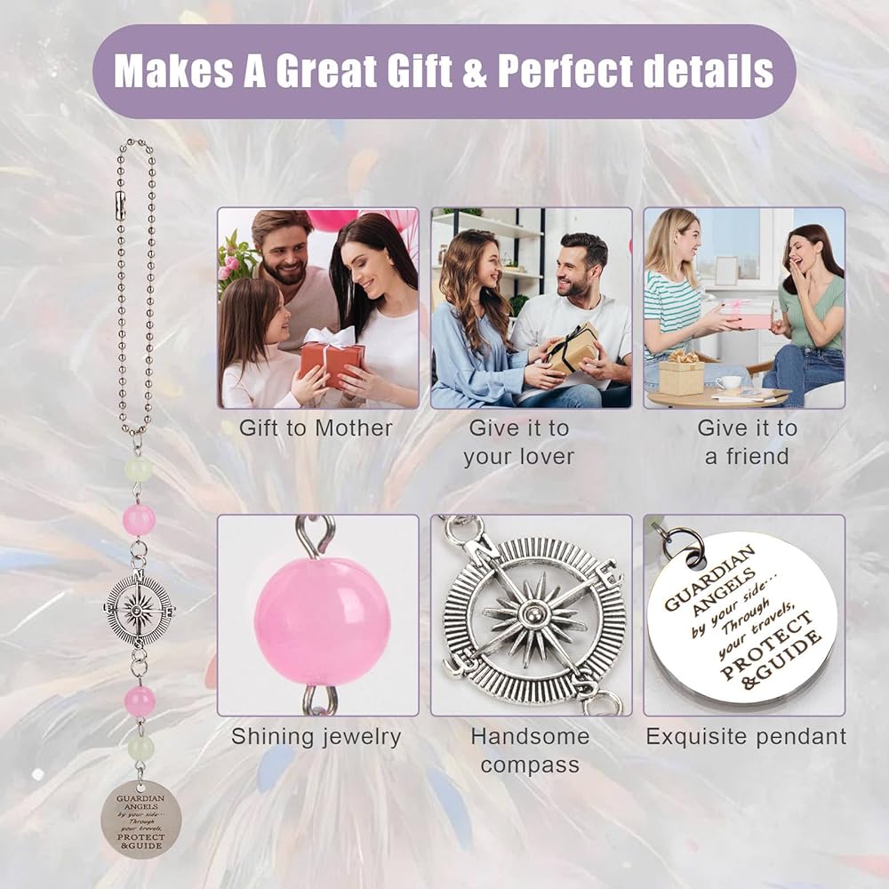 【MATERIAL】 Stainless antique silver angel charm and psalm charm,hanging on a 4 inch chain.Using exquisite natural stones, Pearls and crystals cross connect, Can be used as a rear view mirror car charm or ornament.