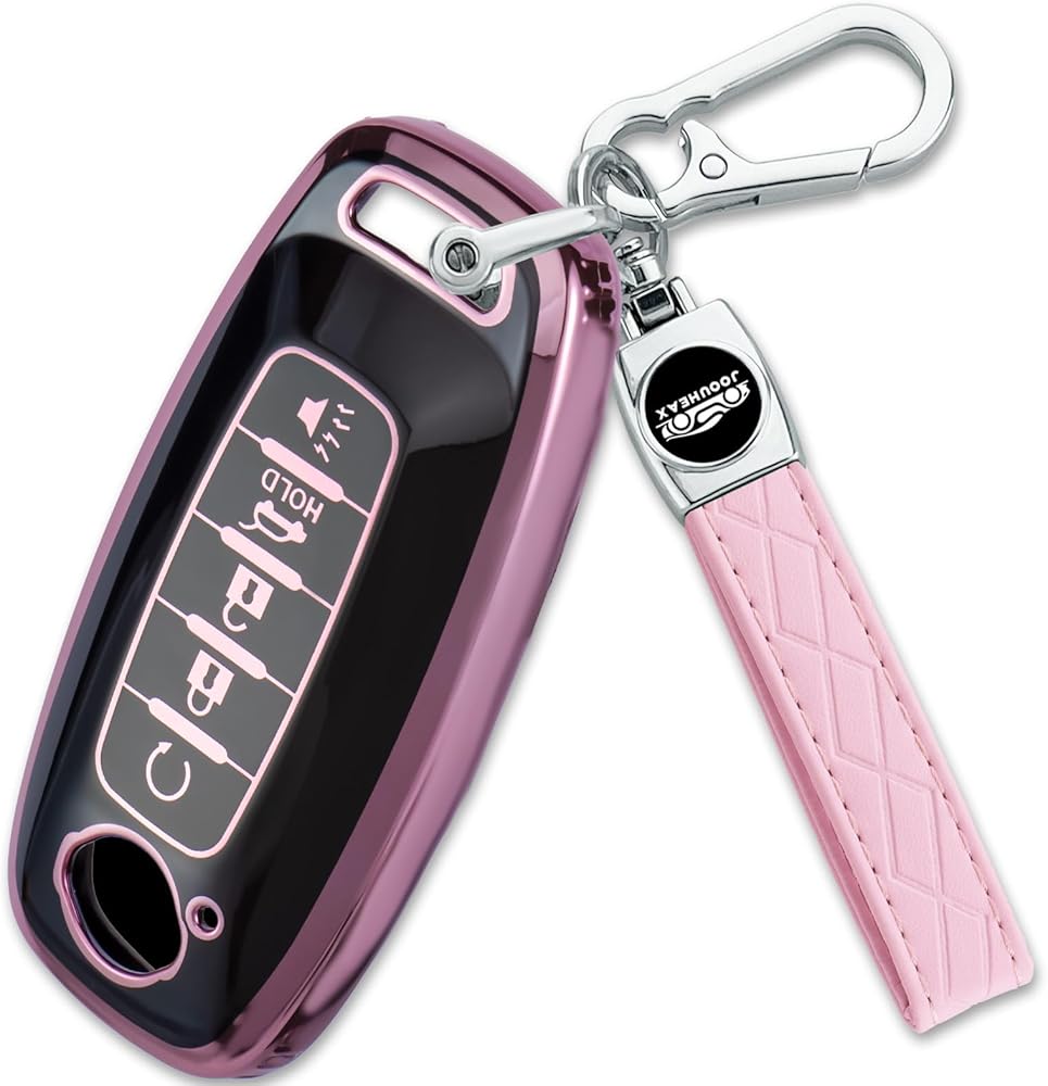 for Nissan Key Fob Cover with Key Chain, Silver Edge Soft TPU 5 Button Key Case for Nissan Rogue Altima Kicks Pathfinder Sentra 2023 2024 2025, Pink