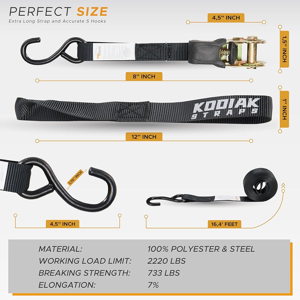4 أحزمة Ratchet - يمكنك الحصول على مجموعة من 4 أشرطة Ratchet مع إكسسوارات كاملة لربط الشحن بشكل آمن. استخدم أحزمة الشحن لتأمين أحمال ثقيلة للنقل مثل الدراجات النارية والأثاث والمعدات الثقيلة والآلات وغيرها من العناصر الكبيرة