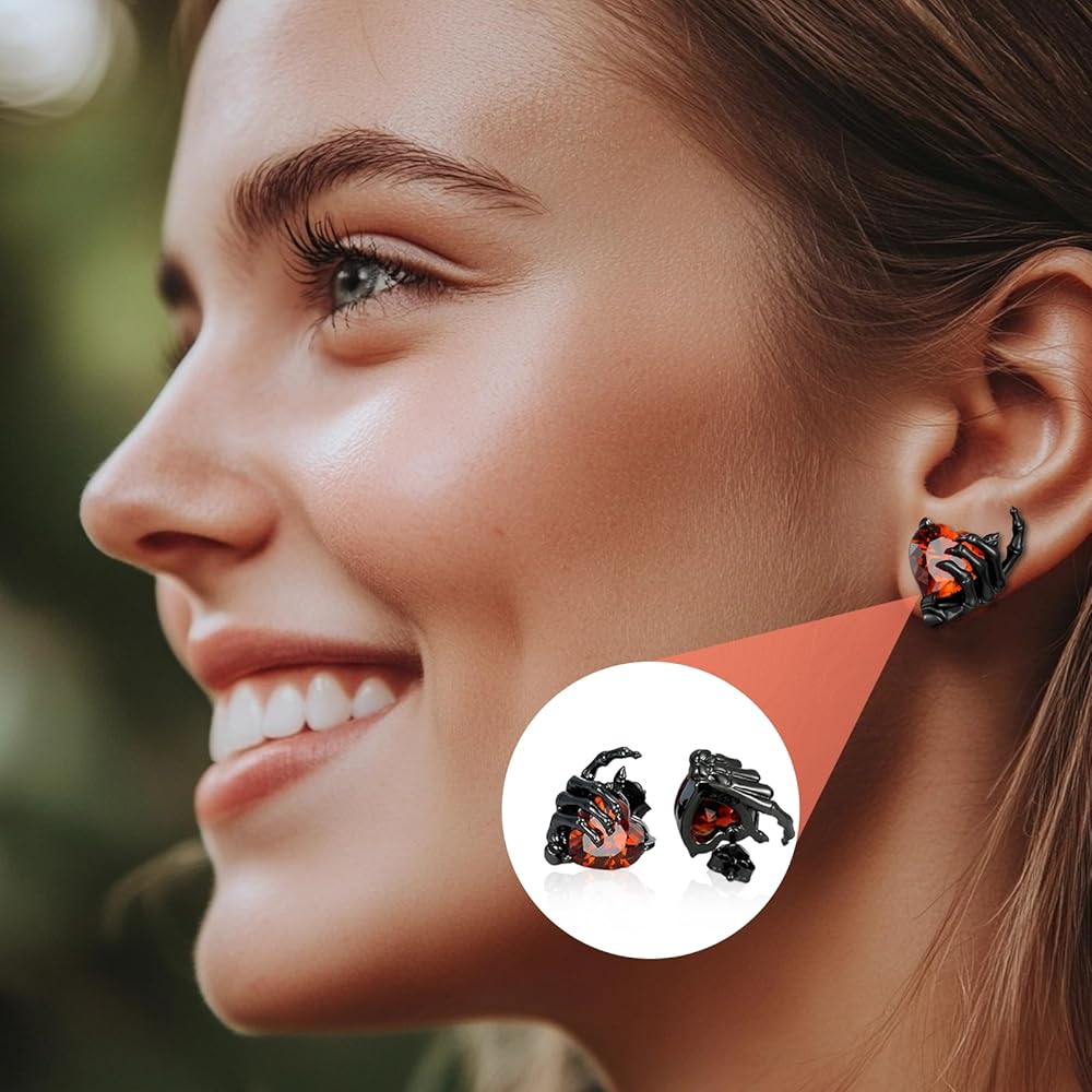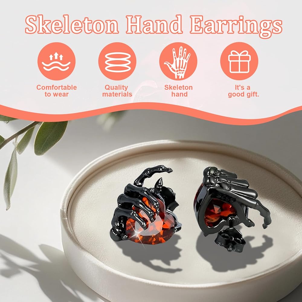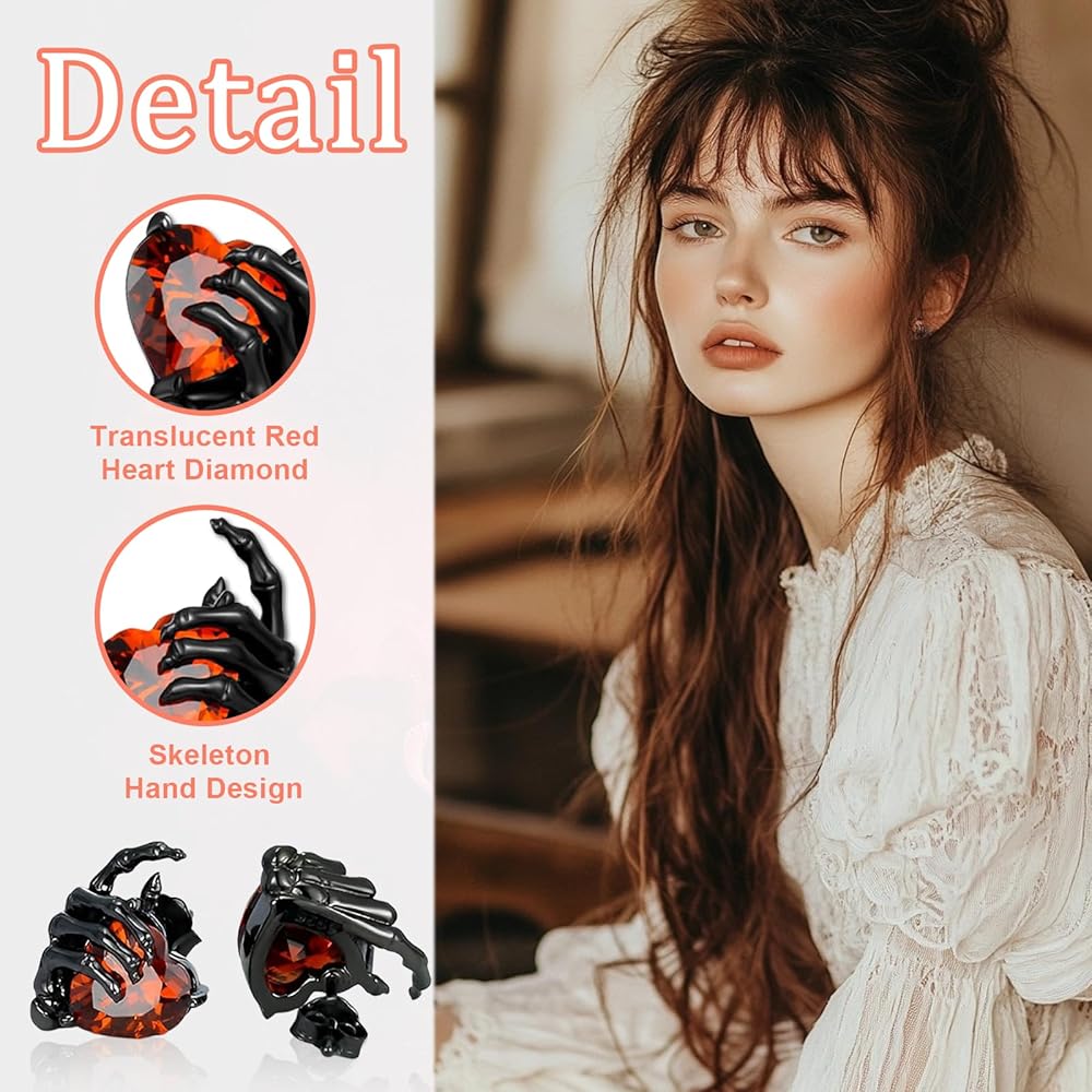 تصميم القوطية الرجعية : هذه الأقراط في الهيكل العظمي للهيكل العظمي تتميز بتصميم يدوي جريء يحمل قلبًا أحمر ، ويلتقط جوهر أسلوب الشرير الصخري. ملحق مذهل يرمز إلى الحرية ، وهو مثالي لإضافة لمسة منفعل إلى أي جماعة