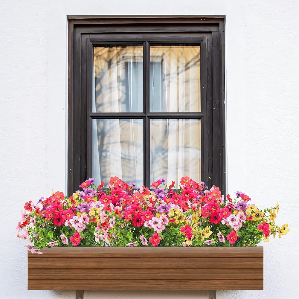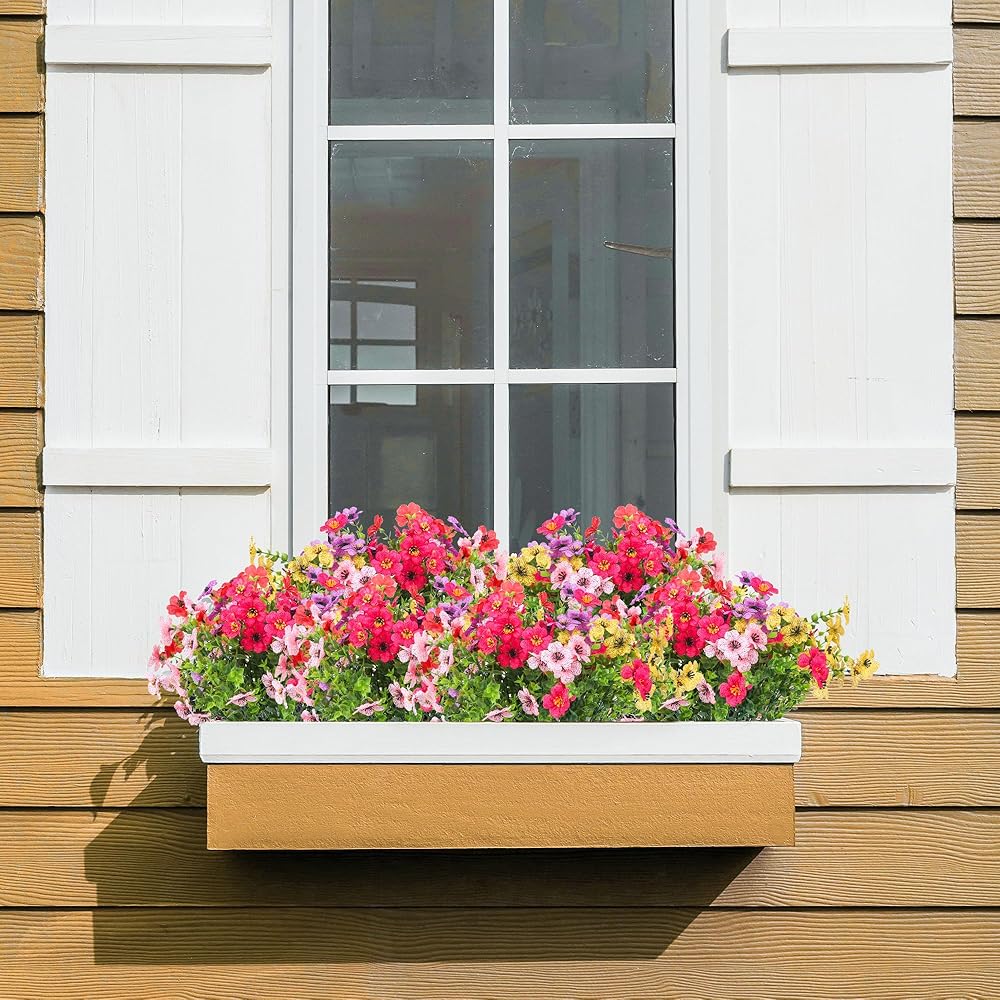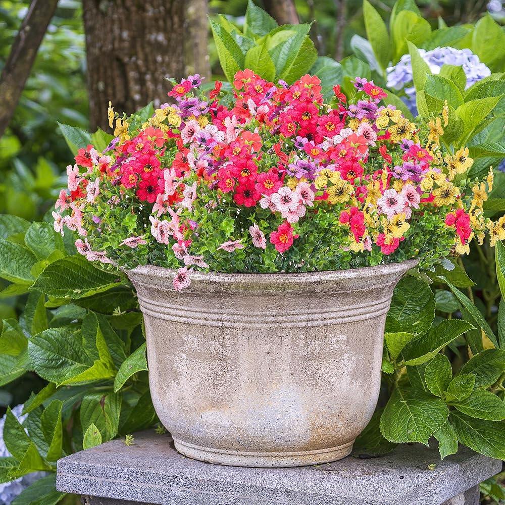 Widely Decoration: These Fake Plastic Flowers Plants with multipl beautiful colors for different seasons and different areas,which can decorate your front porch,yard,coffe talbe etc, enjoy the beautiful flowers blooming all year around.
