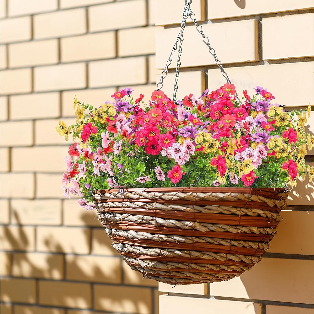 UV Resistant fake flowers: These artificial flowers were made with silk flowers and plastic onion leaves and green stems. No need to watering,pruning or other maintenance.Unlike fresh plants,these outdoor artificial flowers will always stay colorful,vibrant,and blooming.Great for all weather the rain or sun.