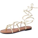 التصميم متعدد الاستخدامات: صندل على طراز المصارع يضم أحزمة كاحل أنيقة من الدانتيل والأشرطة الرفيعة المتعددة عبر القدم للحصول على مظهر كلاسيكي مستوحى من الرومانية