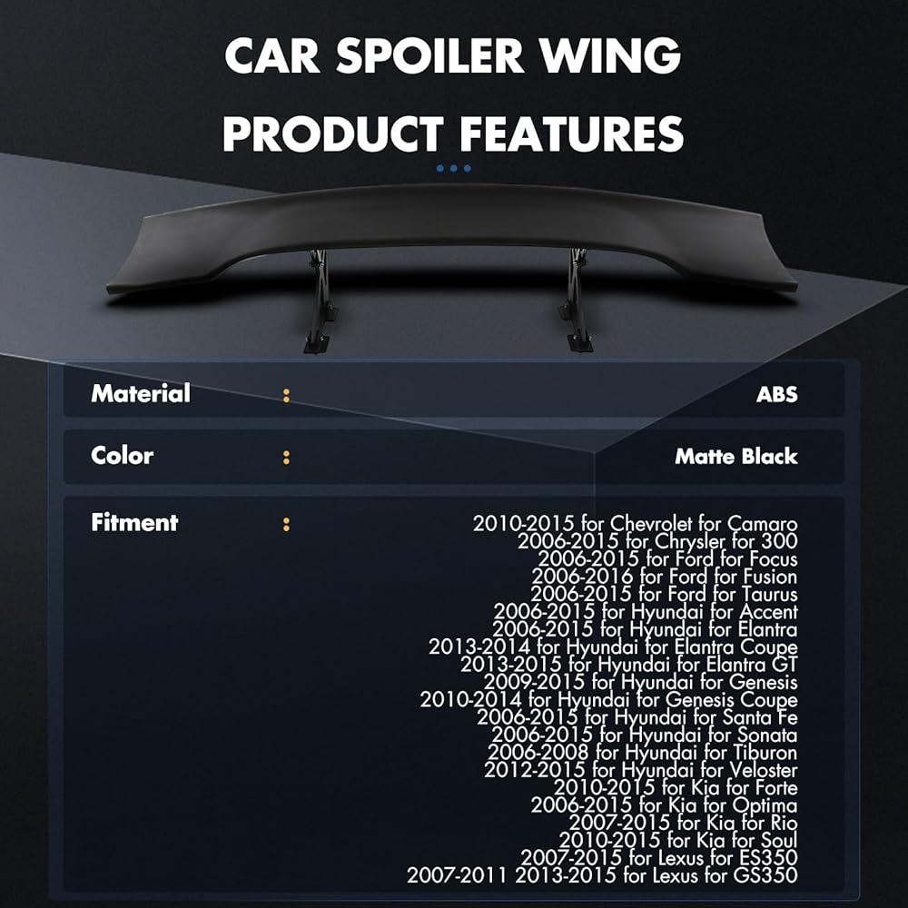استبدال جناح المفسد الجذع الخلفي لشيفروليه كامارو 2010-2015 لكرايسلر 300 2006-2015 لفورد فوكس 2006-2015 لفورد فيوجن 2006-2016 لفورد توروس 2006-2015 Matte Black