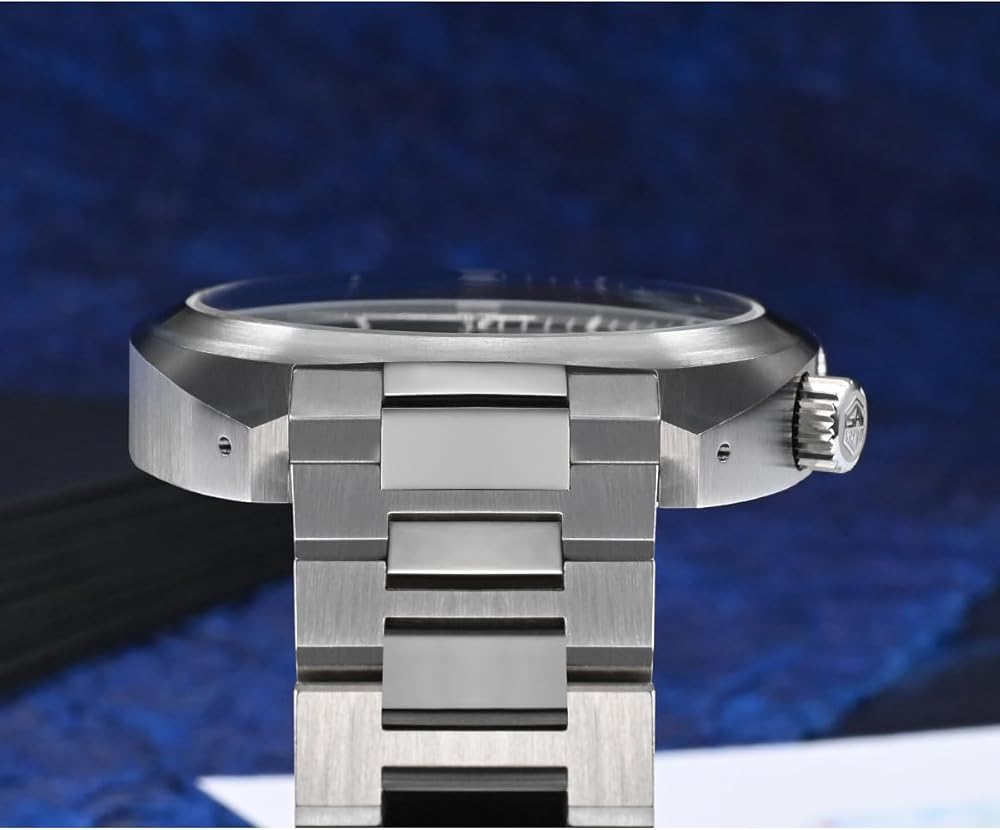 Luminous: BGW-9 Blue Light, Hands and Markers Crown: Screw-down Crown, With 3D Hexagonal Logo Case Back: Screw-down Case Back Strap: 316L Solid Stainless Steel Bracelet, Size 20mm *18mm