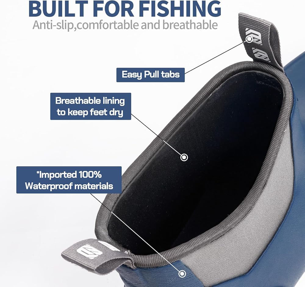 【سهلة التشغيل/الإيقاف والحفاظ على جافة】 تم تصميم علامات السحب الأمامية والخلفية في كاحل هذه الأحذية المطاطية للرجال لتسهيل وضعها والإقلاع من أجل عملك. بالإضافة إلى ذلك ، فإن التصميم المرن قليلاً لأحذية الصيد لدينا يمنع الماء بسهولة من دخول الحذاء ، مما يضمن أن تظل قدميك باردة وجافة أثناء التآكل الممتد.