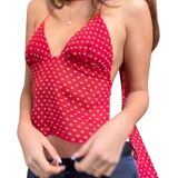 Chic Polka Dot Design – Elevate your wardrobe with this stylish polka dot halter top, featuring a trendy vintage-inspired pattern for a timeless look.