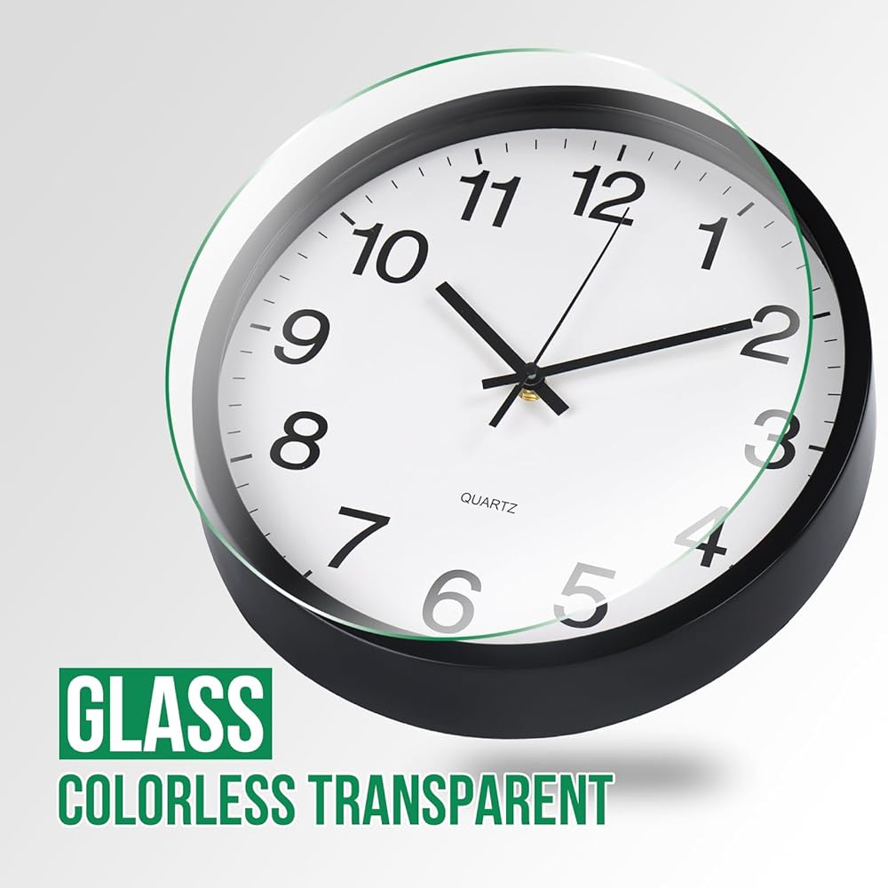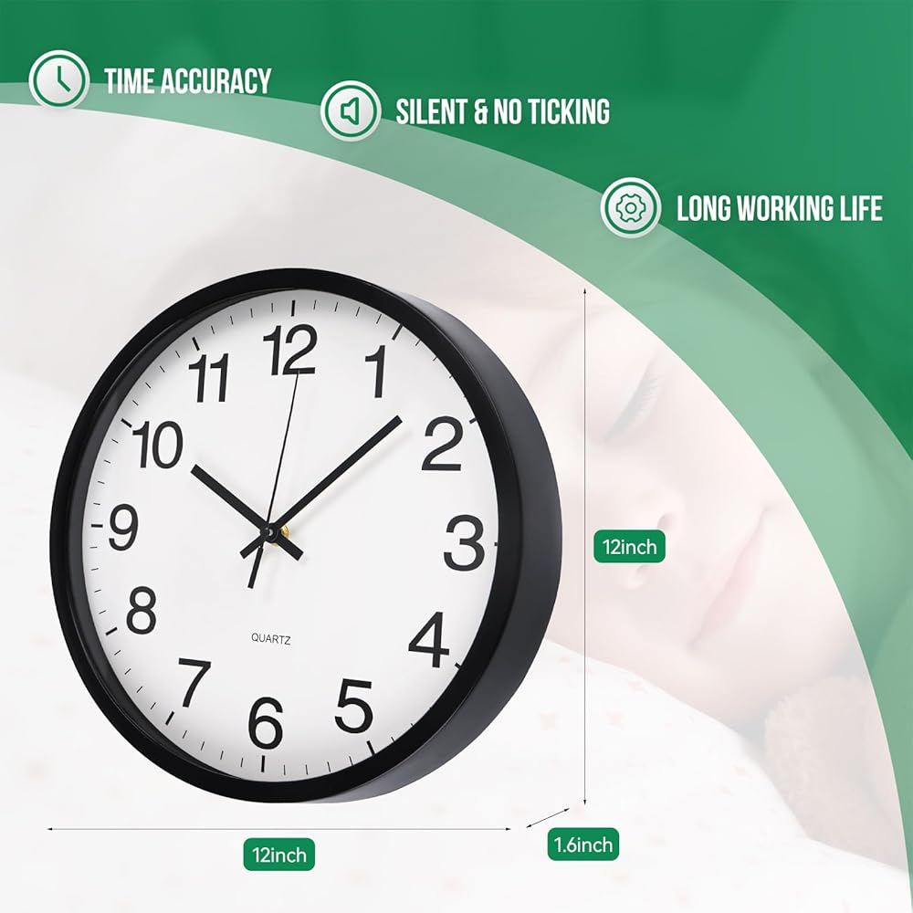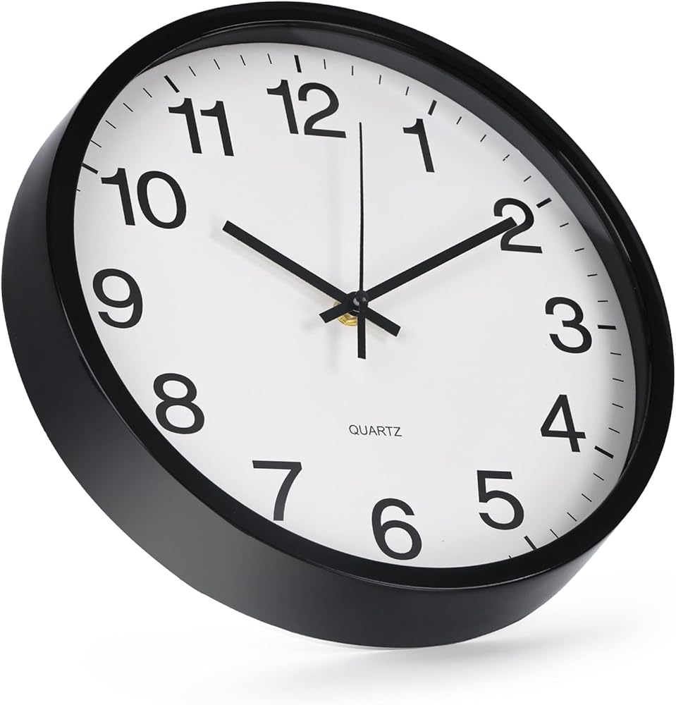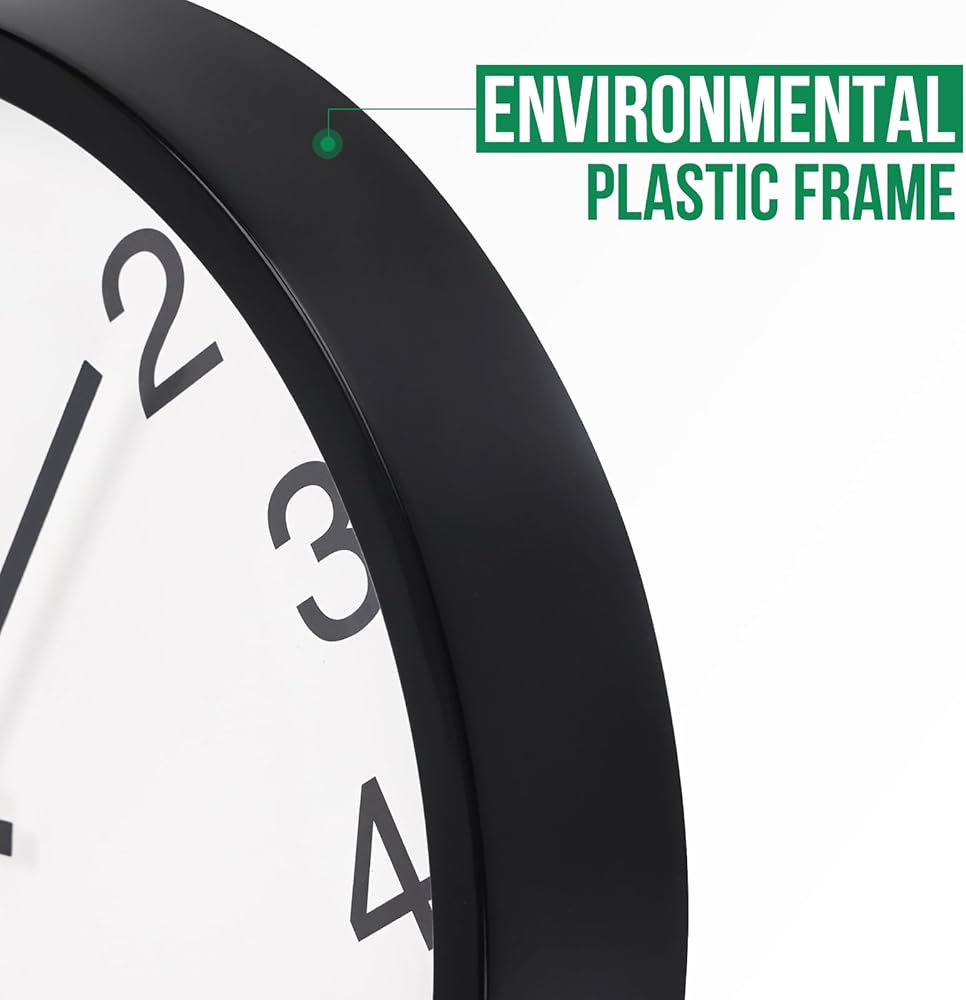 ساعة الحائط غير المحسوبة ديكور حركة الكوارتز الصامتة على مدار الساعة الحديثة الساعات الجدار البلاستيكية الجولة للمنزل/المكتب/المدرسة/غرفة المعيشة/غرفة نوم/مطبخ (أسود ، 12 بوصة)