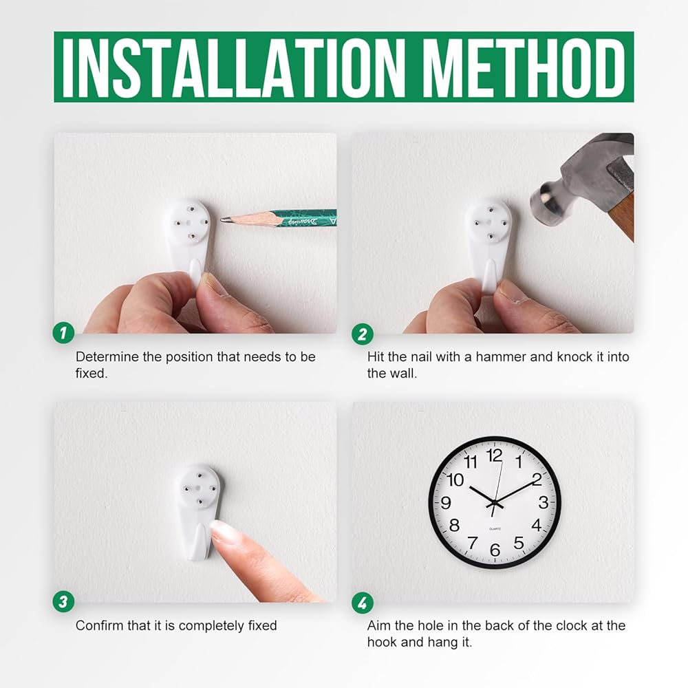 من السهل تعليق: ساعة الحائط هذه خفيفة ولها فتحة معلقة على الظهر ، بحيث يمكن تعليقها بسهولة على الحائط.