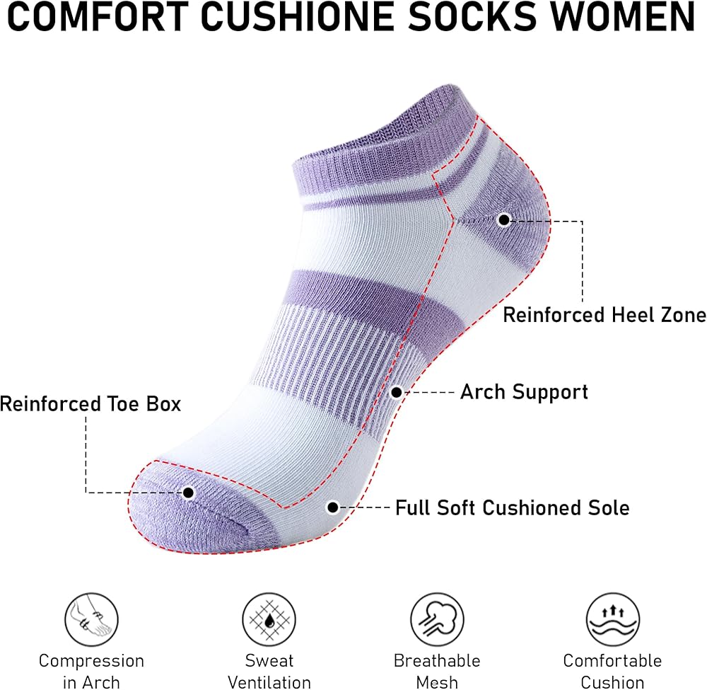 الدعم القوس للاستقرار المحسّن: يتميز الجوارب الرياضية للسيدات بفرقة ضغط قوس لمزيد من الدعم والاستقرار. الضغط اللطيف يقلل من التعب ، مما يجعلها مثالية للركض أو الأنشطة عالية الطاقة.